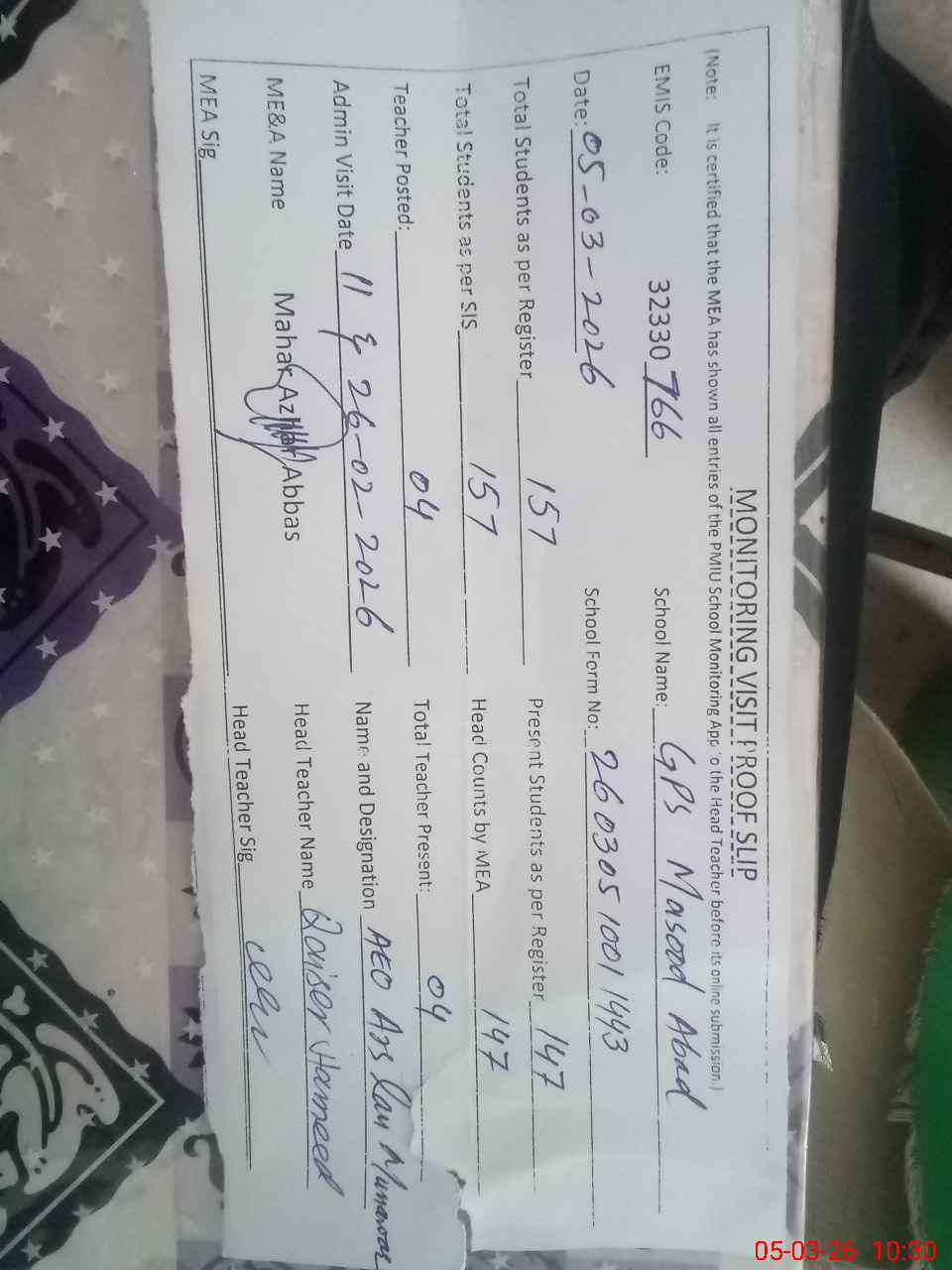 | EMIS Code: 32330766 | Name of School: GPS MASOOD ABAD | |||