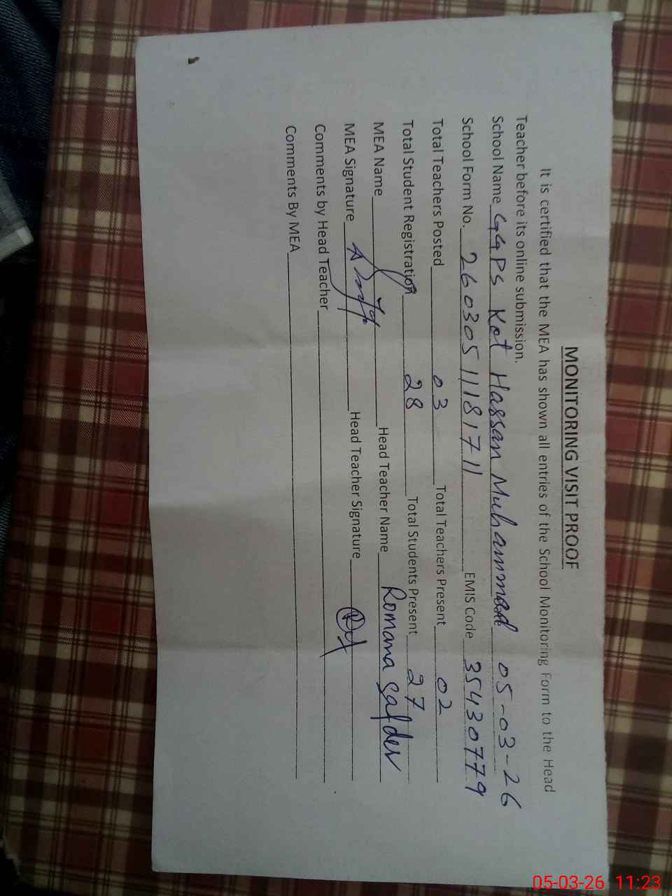 | EMIS Code: 35430779 | Name of School: GGPS KOT HASSAN MOHAMMAD | |||