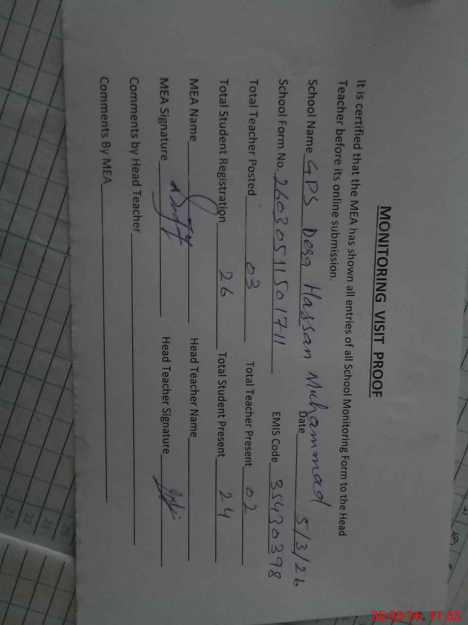 | EMIS Code: 35430398 | Name of School: GPS DERA HASSAN MUHAMMAD | |||
