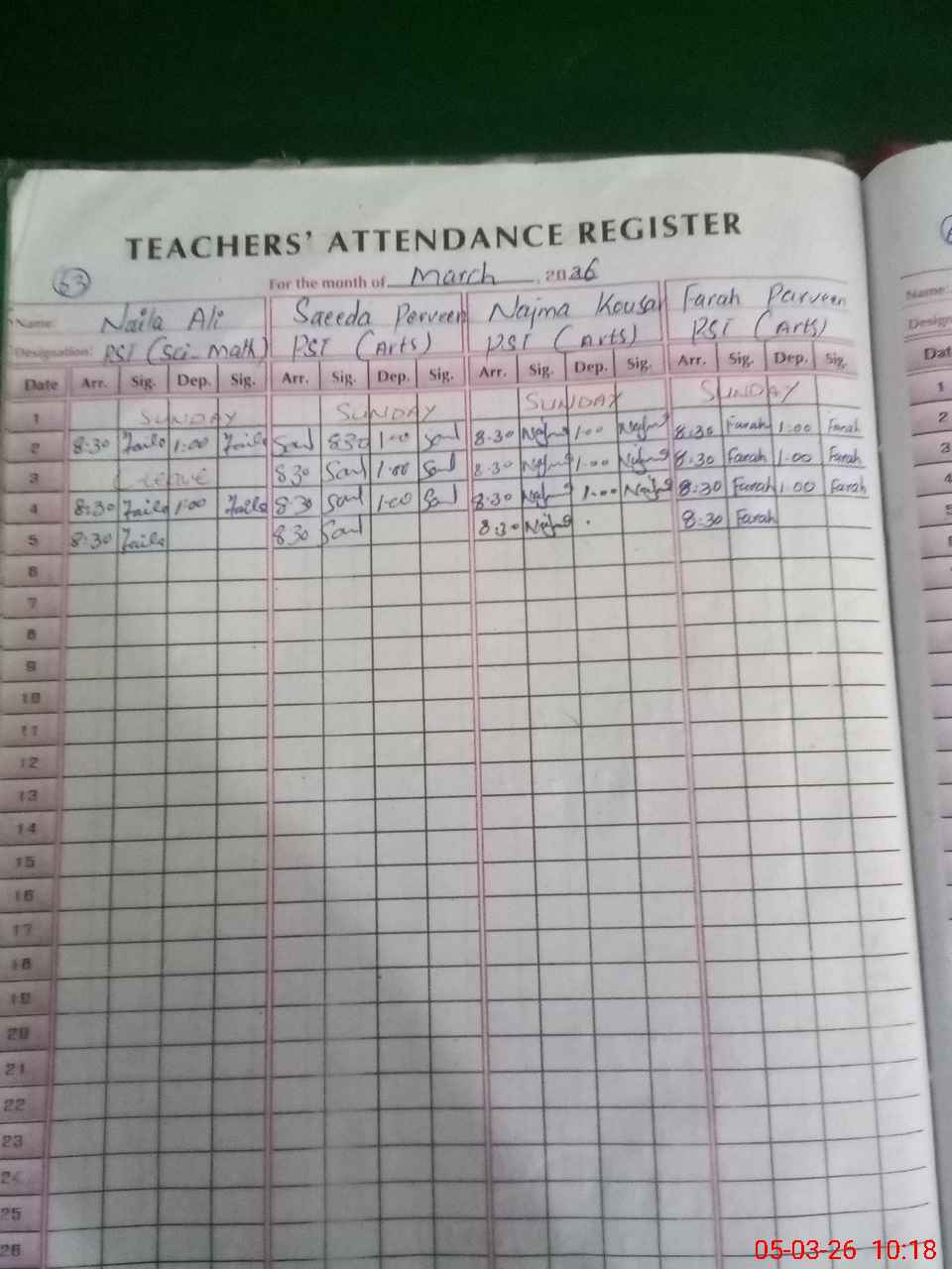 | Leave | Duty | Absent | Maternity | Medical | Ex- Pak |