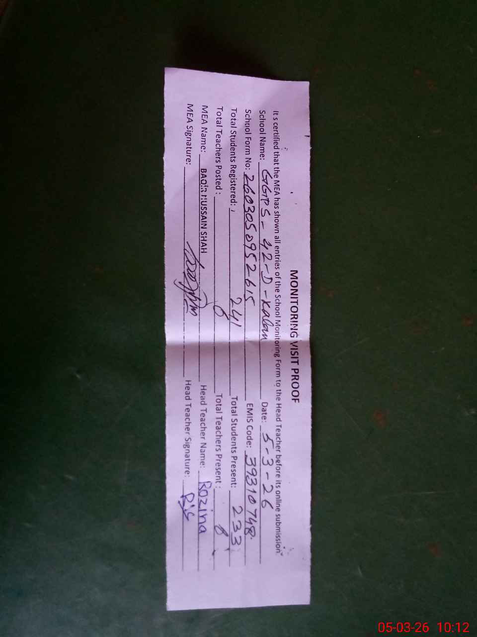 | EMIS Code: 39310748 | Name of School: GGES 42/D KALAN | |||