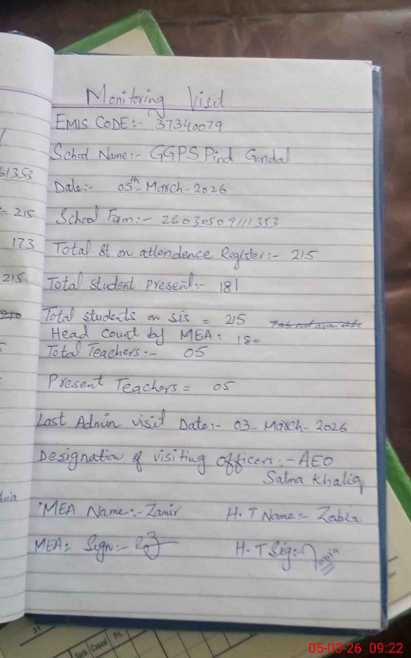 | EMIS Code: 37340079 | Name of School: GGPS PIND GONDAL | |||