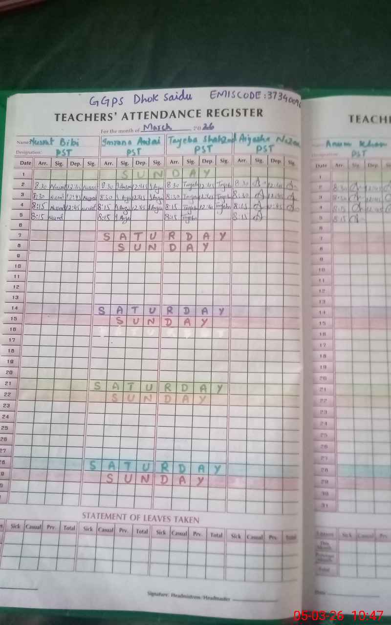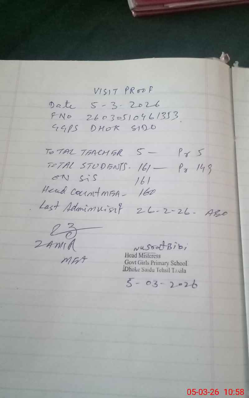 | EMIS Code: 37340096 | Name of School: GGPS DHOK SIDU | |||