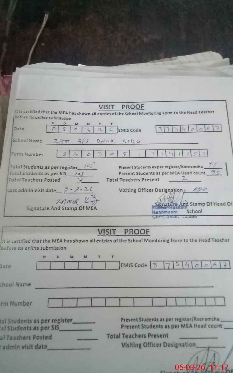 | EMIS Code: 37340067 | Name of School: GPS DHOKE SAIDOO | |||