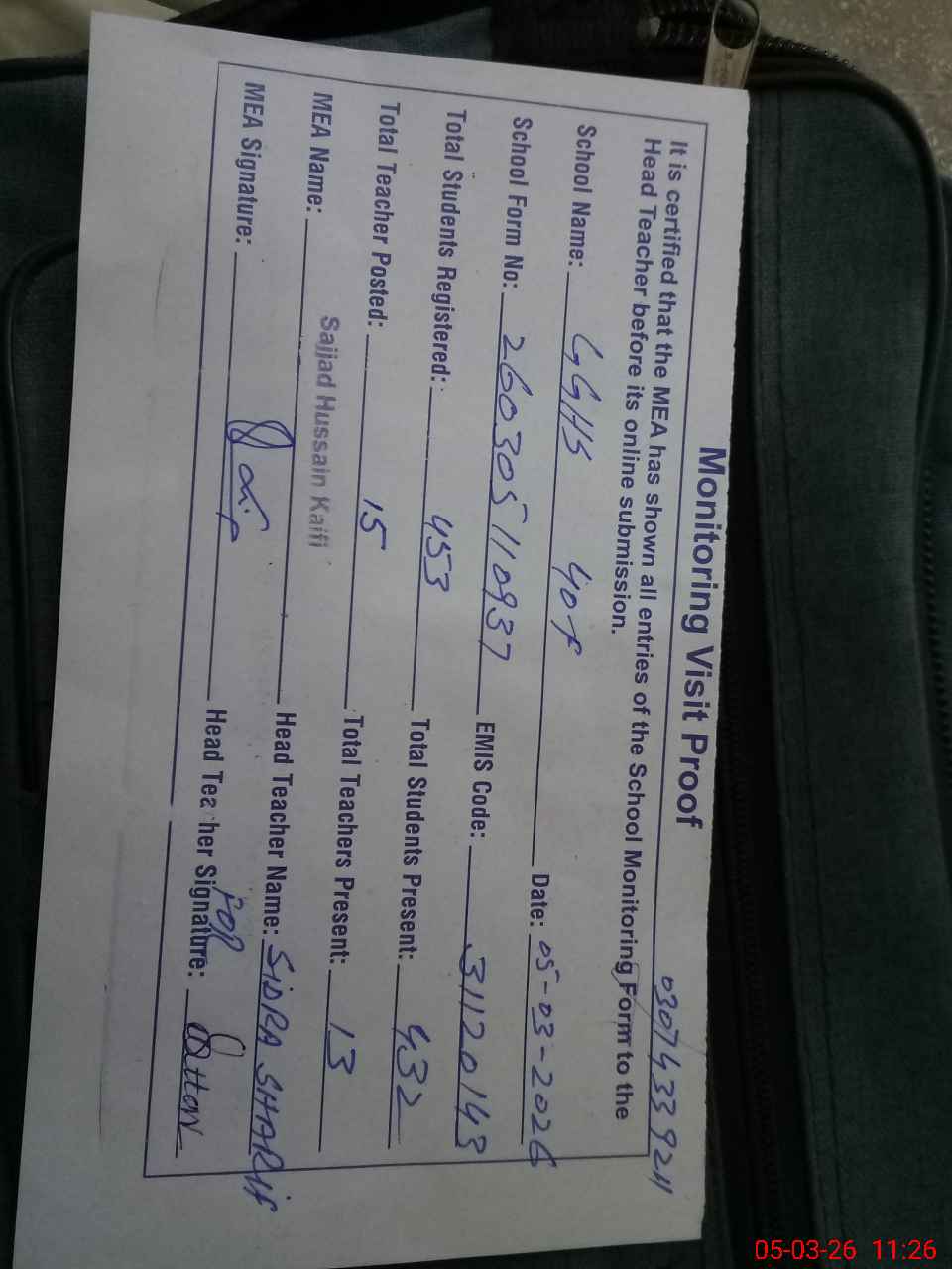 | Certified that this School was Inspected by the Undersigned MEA/DMO Today and the Information Stated Above is as Per Record. | |||||