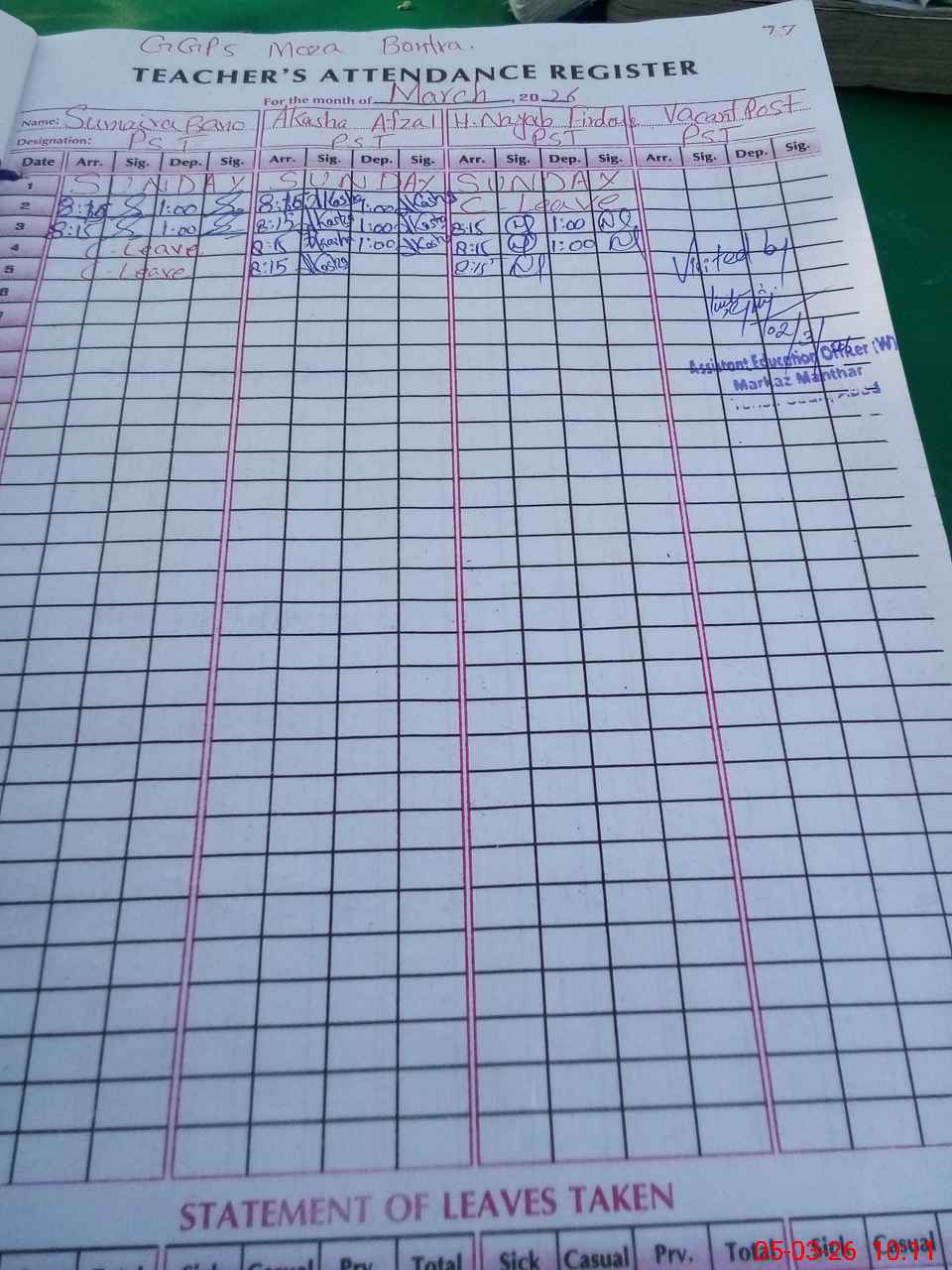 | Name: Ha**** Kh**** Designation: (School Headmaster's/Headmistress's) PST/PTC/JV Phone/Cell Number: 03**** |