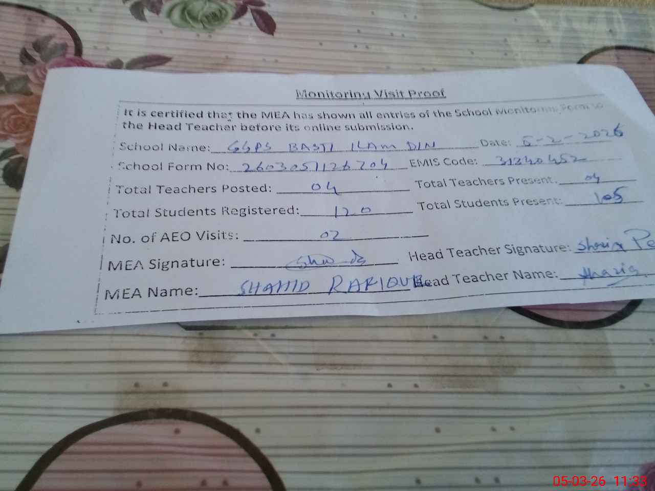 | EMIS Code: 31340452 | Name of School: GGPS BASTI ILAM DIN | |||