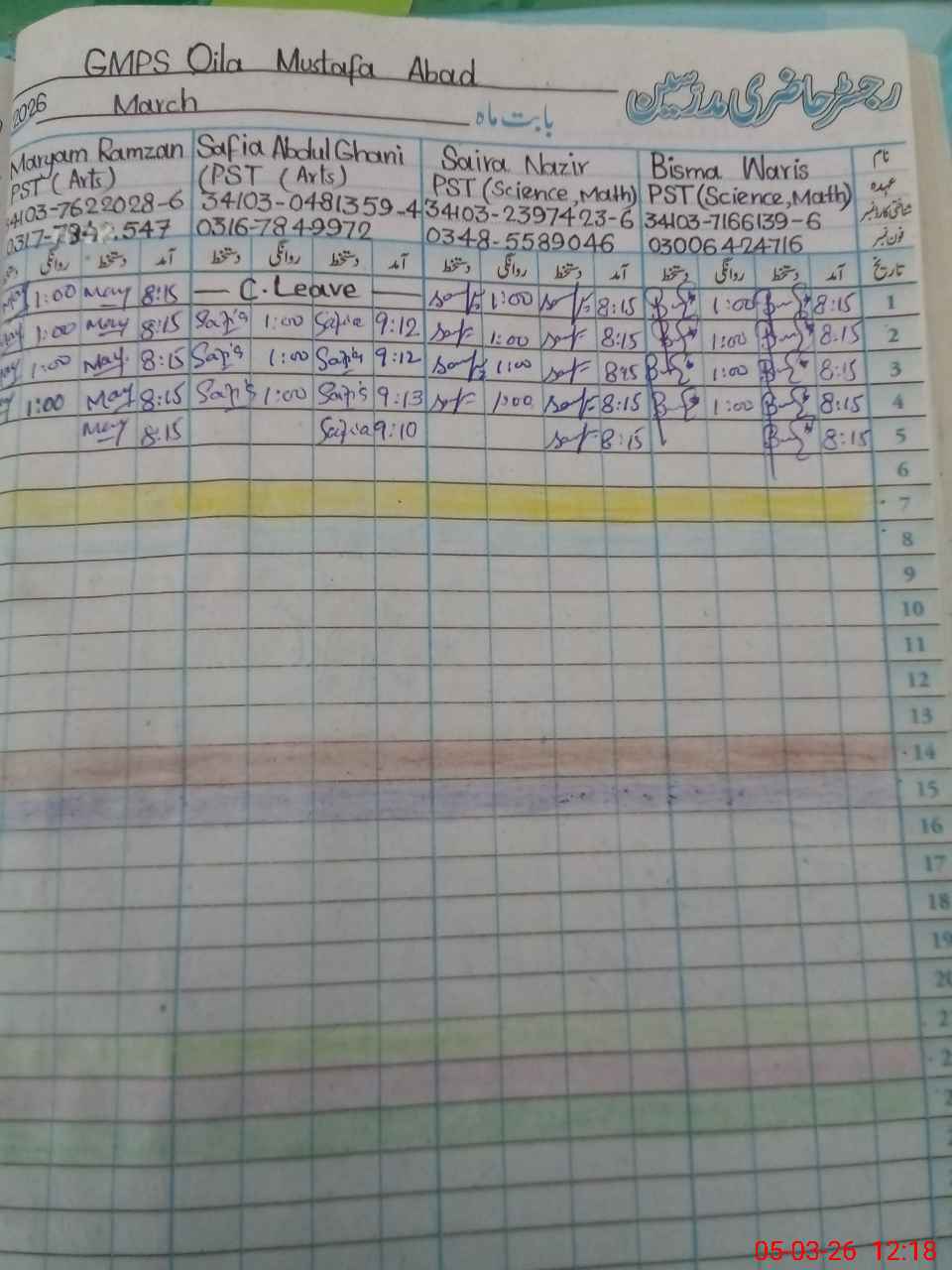 | Leave | Duty | Absent | Maternity | Medical | Ex- Pak |