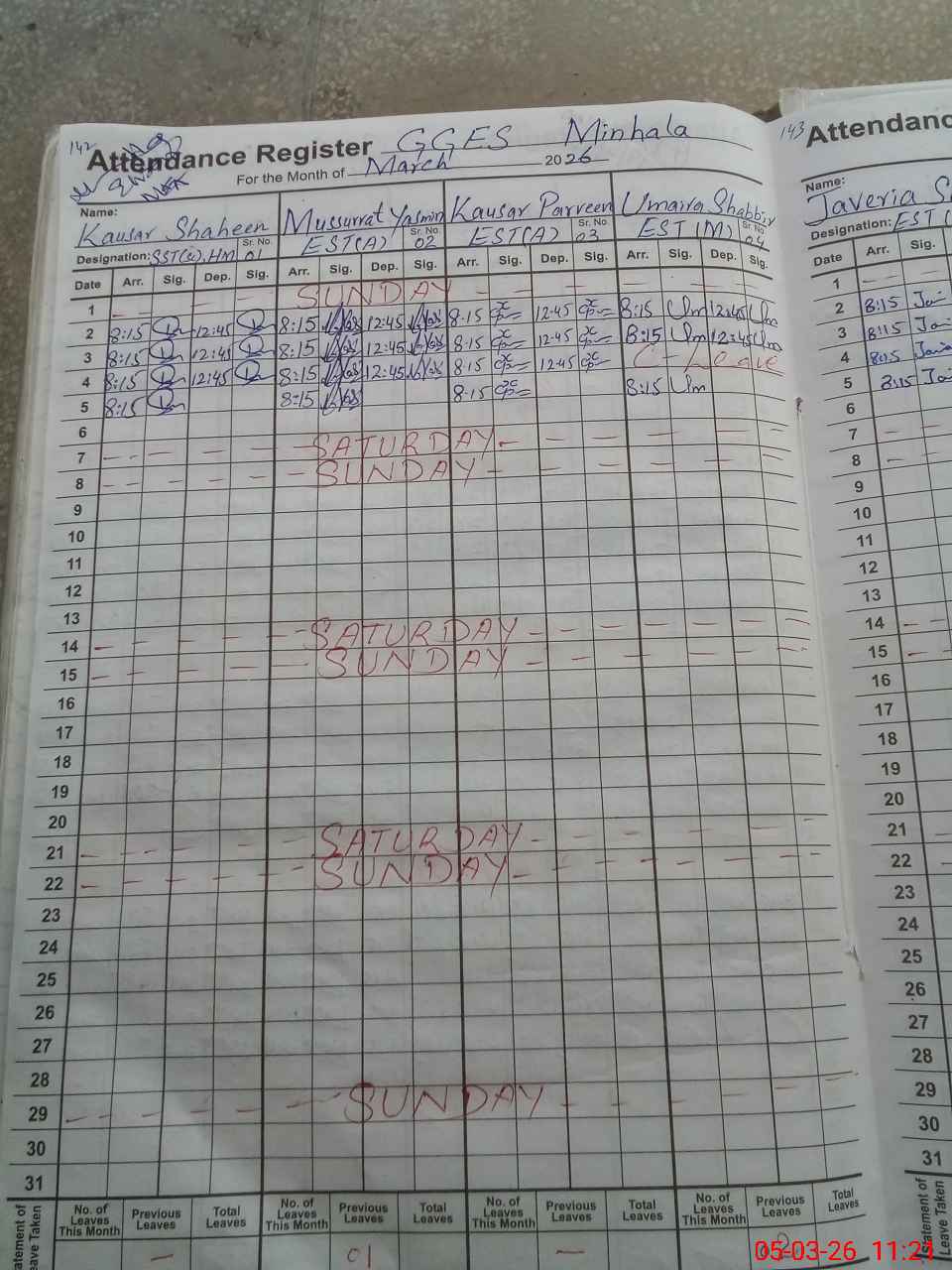 | Leave | Duty | Absent | Maternity | Medical | Ex- Pak |