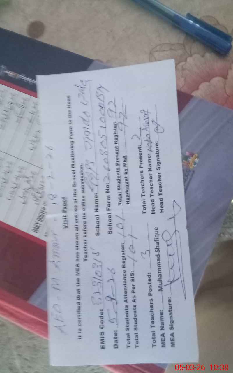 | Attendance Register | Head Teacher | MEA with School | Visit Proof |