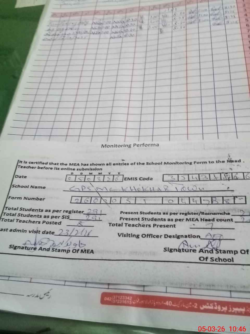 | EMIS Code: 35431166 | Name of School: GPS MC KHOKHAR TOWN | |||