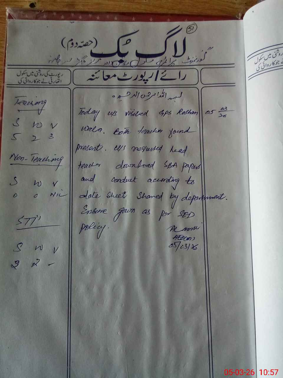 | EMIS Code: 36410254 | Name of School: GPS ROSHAN WALA, SARAI SIDHU | |||