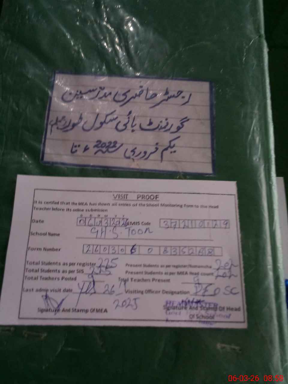 | EMIS Code: 37210129 | Name of School: GHS TOOR | |||