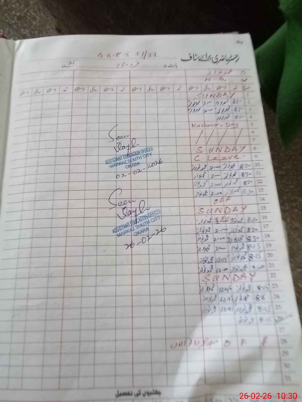 | District: OKARA | Tehsil: OKARA | Markaz: SOUTH CITY - FEMALE | Level: Middle | |