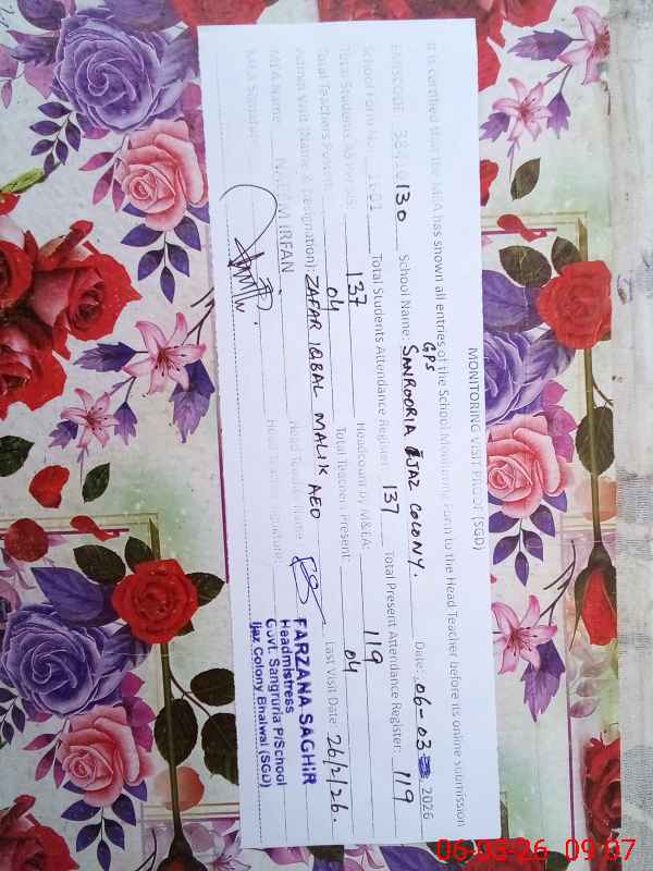 | EMIS Code: 38410130 | Name of School: GPS SANROORIA BHALWAL IJAZ COLONY | |||