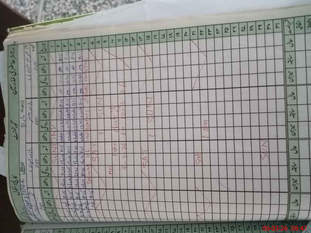 | 37**** | Ma**** Sh**** | PST Arts | Regular | 0 | 0 | 0 | 0 | 0 | 0 | 0 | 0 | 0 | Exam Duty |