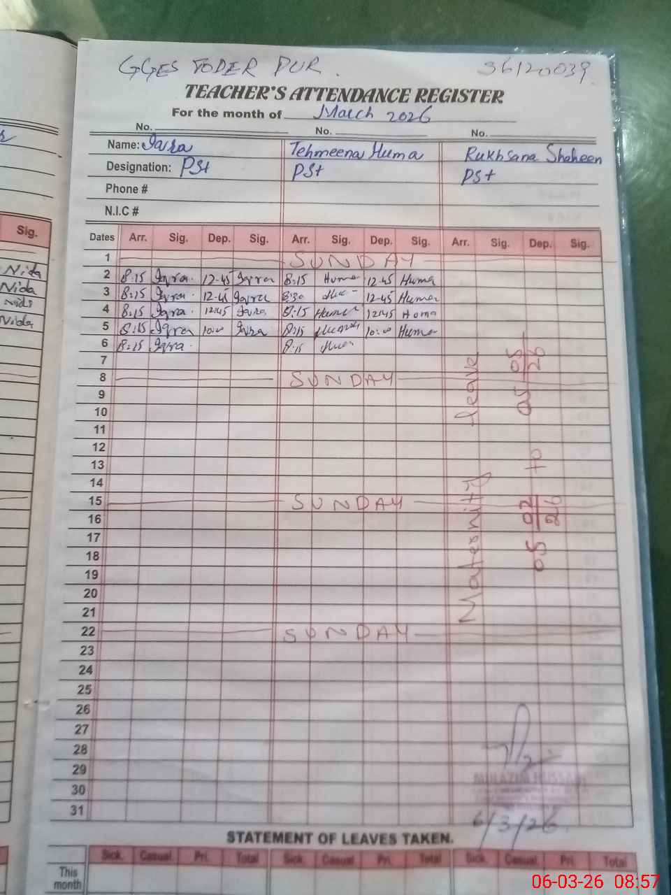 | 36**** | Ru**** Sh**** | ESE Science | Contract | 0 | 0 | 0 | 0 | 0 | 0 | 0 | 0 | 0 | Maternity |