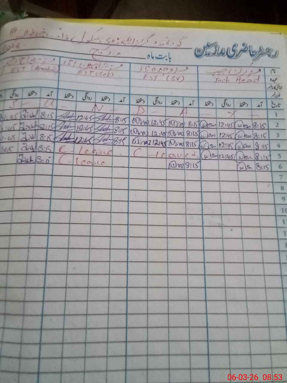 | 38**** | Sh**** Ah**** | EST Science | Regular | 0 | 0 | 0 | 0 | 0 | 0 | 0 | 0 | 0 | Casual |