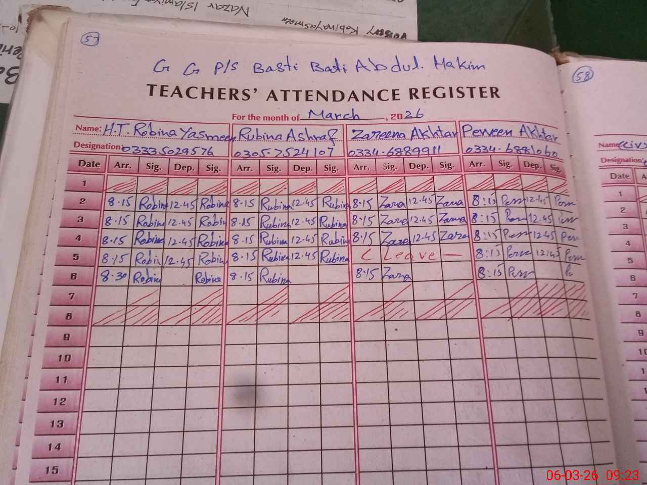| Name: Ro**** Ya**** Designation: (School Headmaster's/Headmistress's) PST Phone/Cell Number: 03**** |