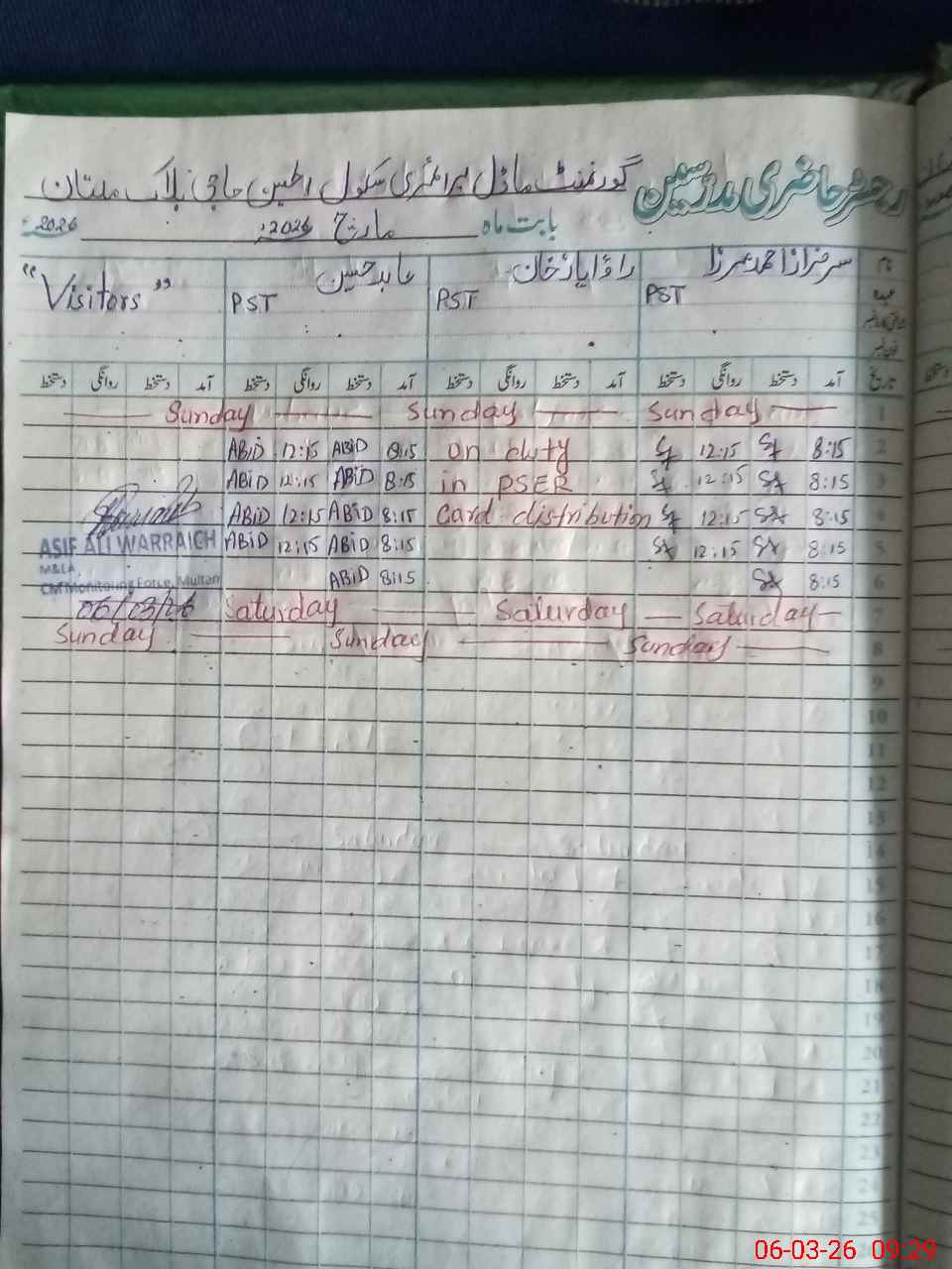 | Name: Sa**** Az**** Designation: (School Headmaster's/Headmistress's) PST Head Phone/Cell Number: 03**** |