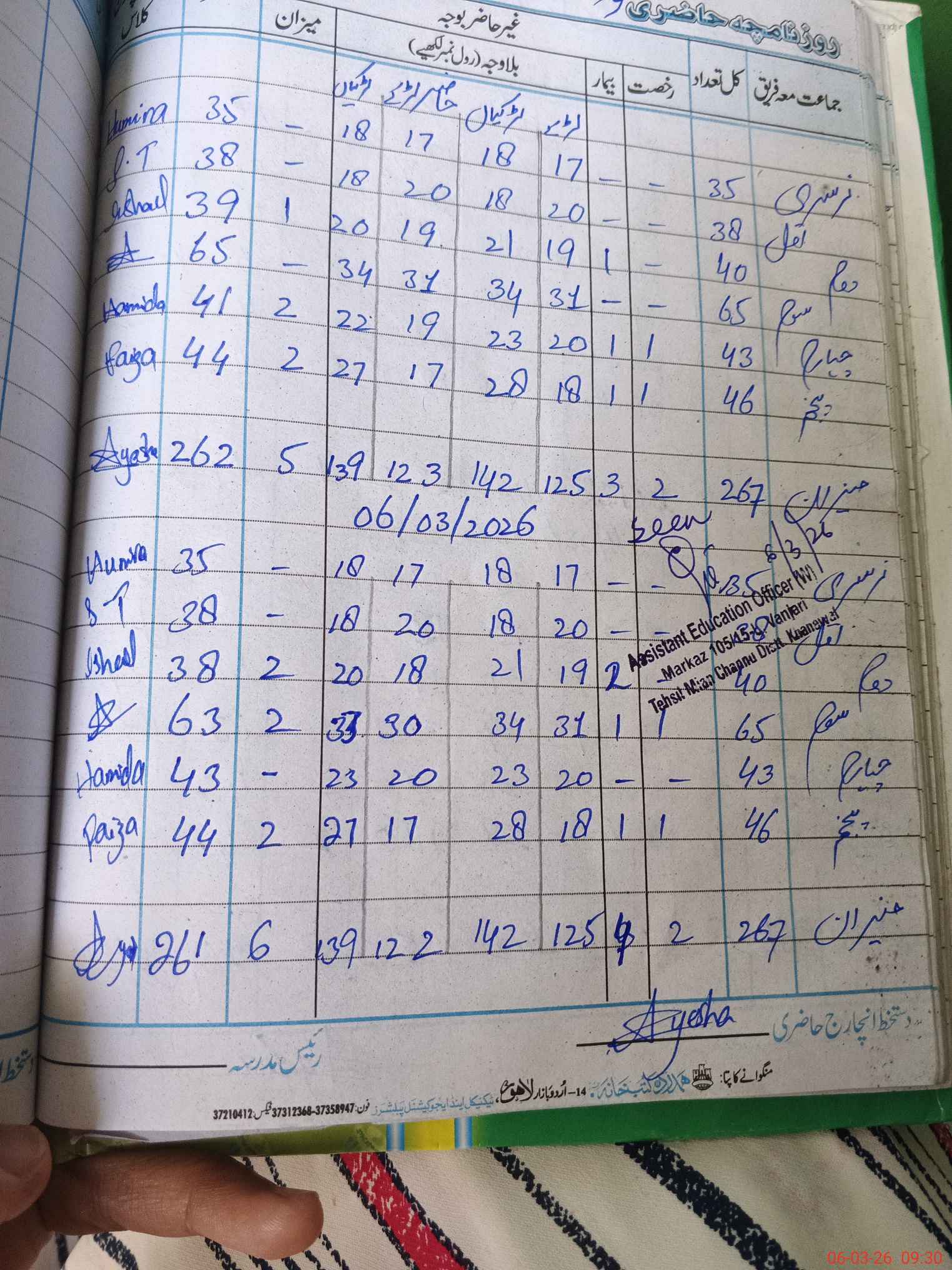 | Name: NA**** SA**** Designation: (School Headmaster's/Headmistress's) S.S.T.(GENERAL Phone/Cell Number: 03**** |