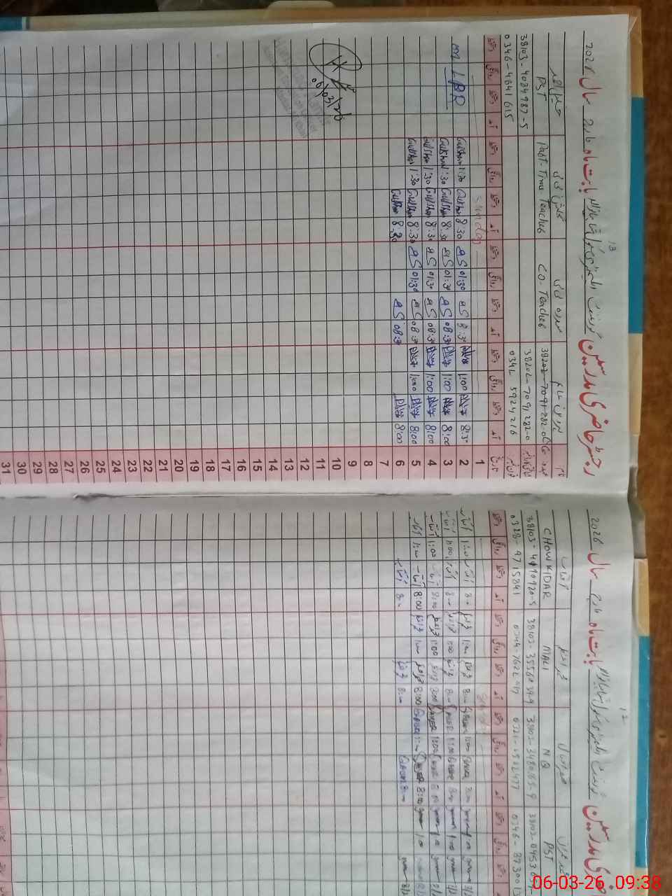 | CNIC | Full Name | Designation | R/C | Absence During Last Calender Month |