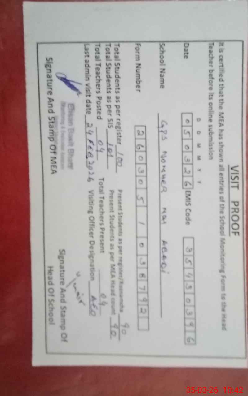 | EMIS Code: 35430396 | Name of School: GPS NOKHER NAI ABADI | |||