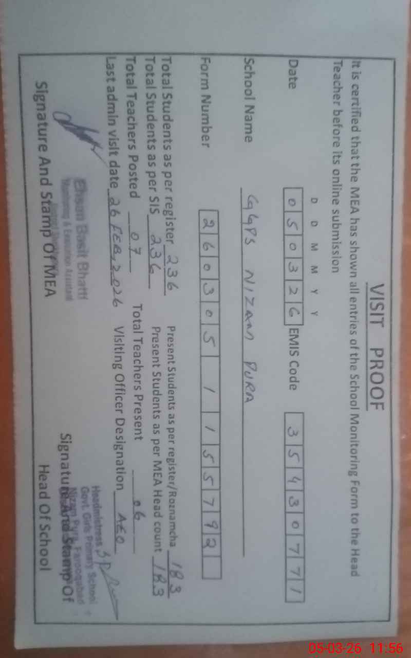 | EMIS Code: 35430771 | Name of School: GGPS NIZAM PURA | |||