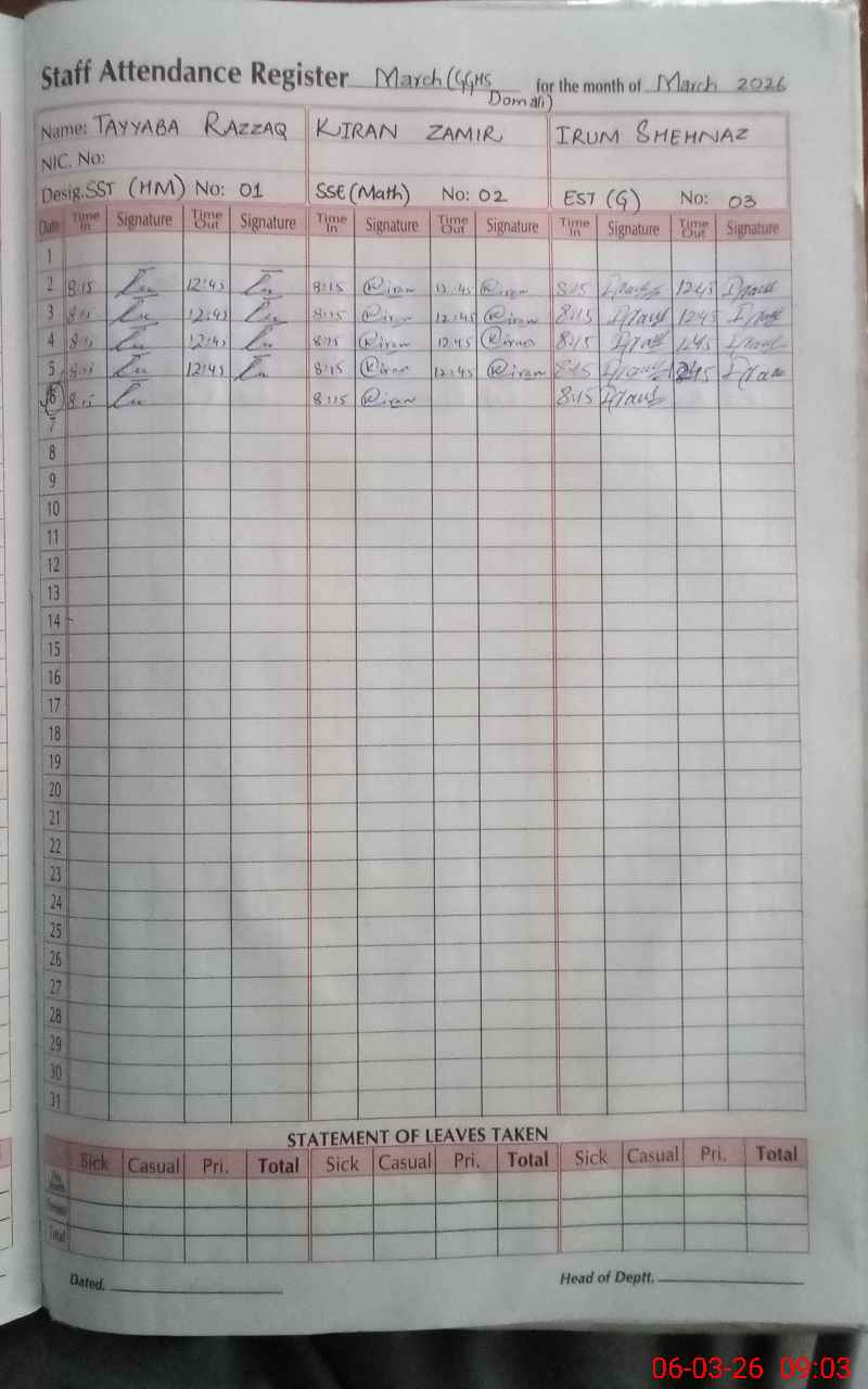 | Name: TA**** RA**** Designation: (School Headmaster's/Headmistress's) Headmistress Phone/Cell Number: 03**** |