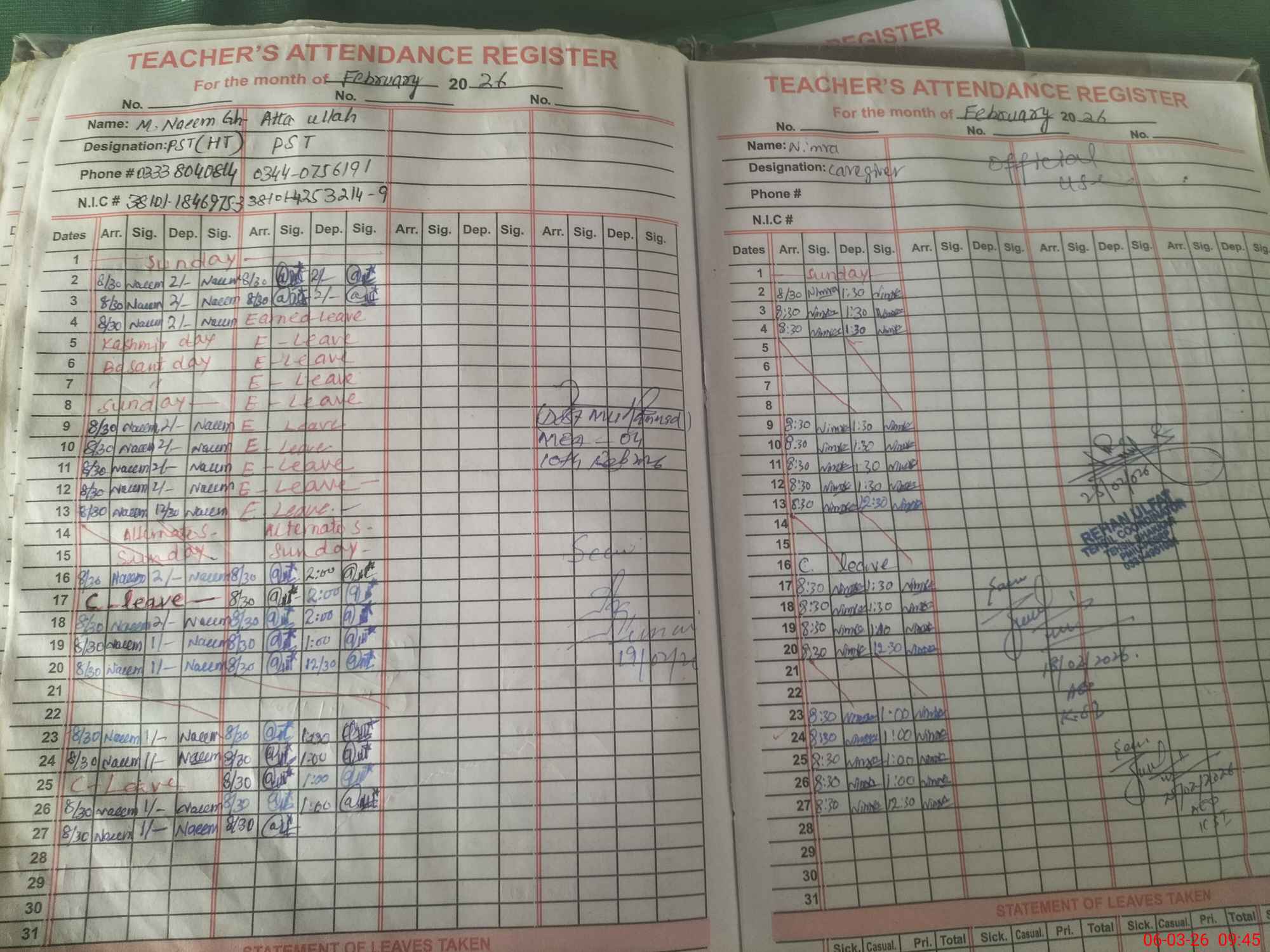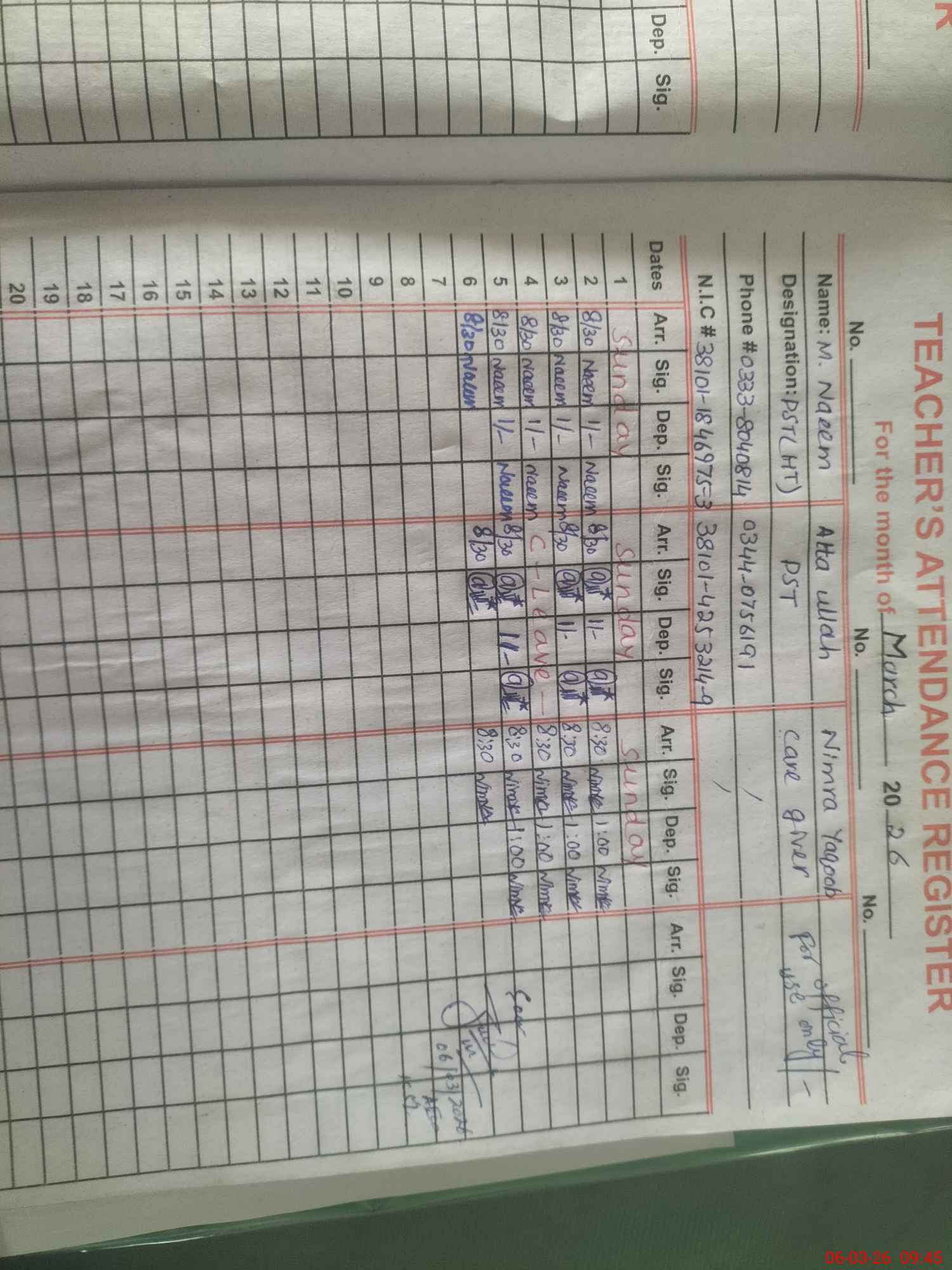 | Name: Mu**** Na**** Designation: (School Headmaster's/Headmistress's) PST Phone/Cell Number: 03**** |