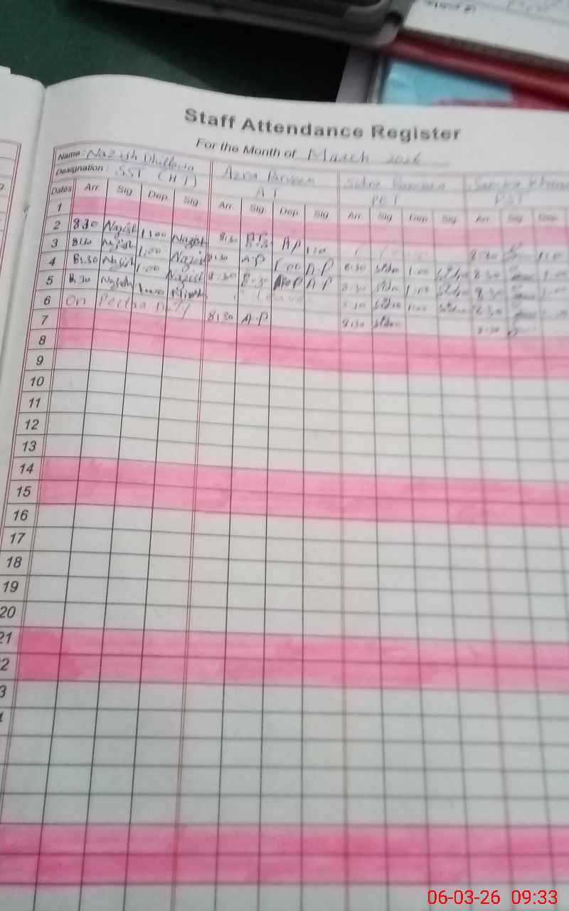 | 35**** | Go**** Sh**** | PST Science/Maths | Regular | 0 | 0 | 28 | 0 | 0 | 0 | 0 | 0 | 0 | Absent (Un-Authorized) |