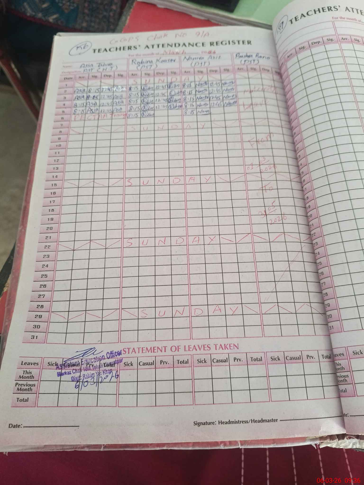 | Name: AS**** TA**** Designation: (School Headmaster's/Headmistress's) PST Phone/Cell Number: 03**** |