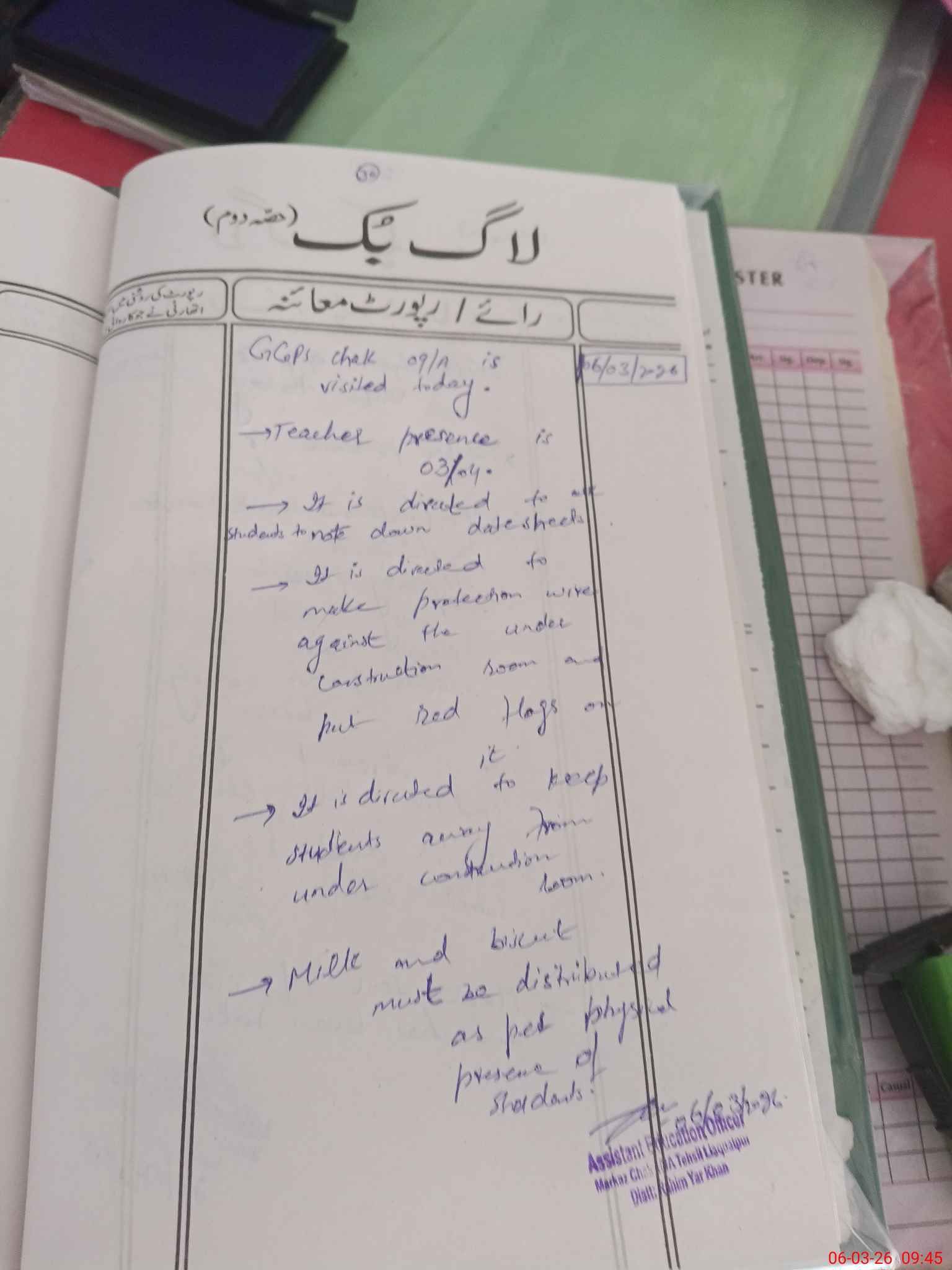 | Certified that this School was Inspected by the Undersigned MEA/DMO Today and the Information Stated Above is as Per Record. | |||||