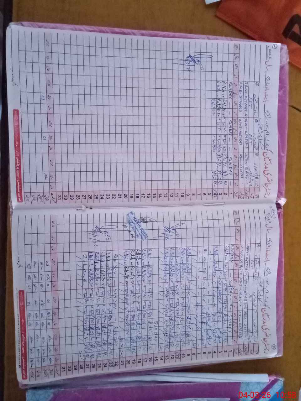 | CNIC | Full Name | Designation | R/C | Absence During Last Calender Month |