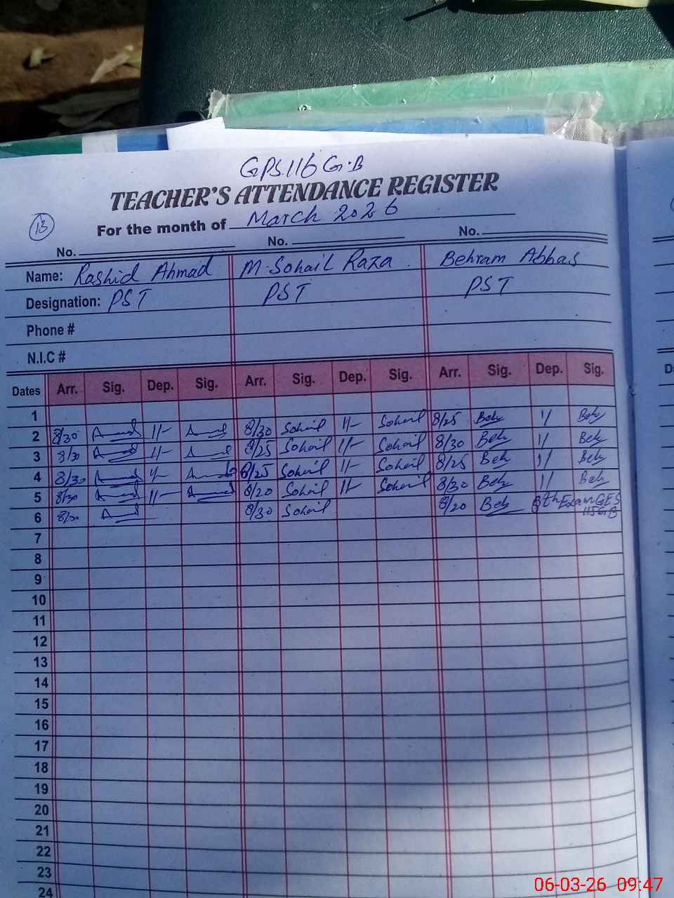 | Name: RA**** AH**** Designation: (School Headmaster's/Headmistress's) PST Phone/Cell Number: 03**** |