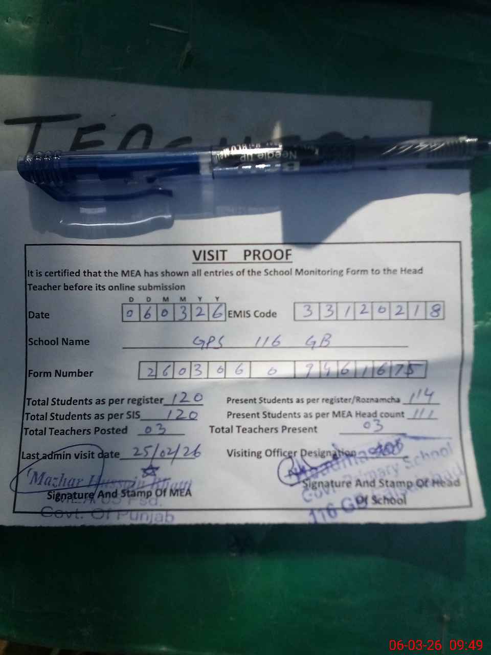 | EMIS Code: 33120218 | Name of School: GPS 116 GB | |||