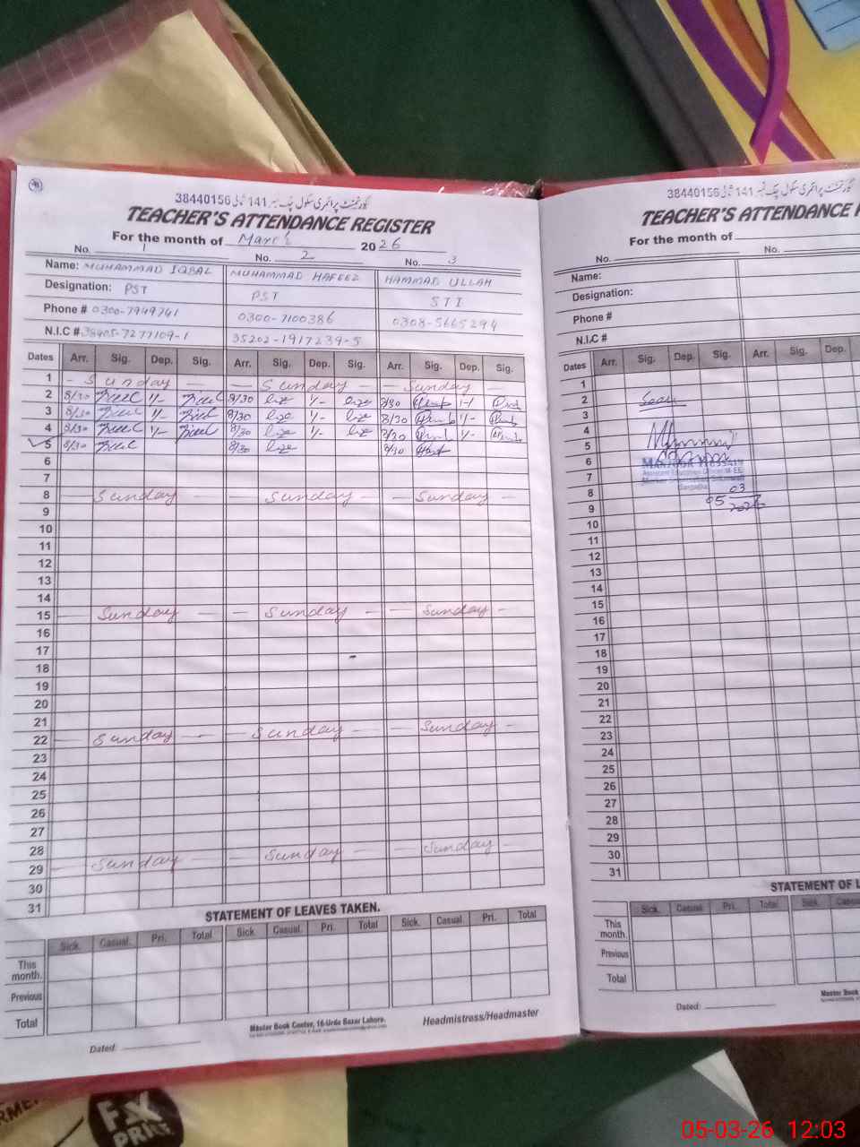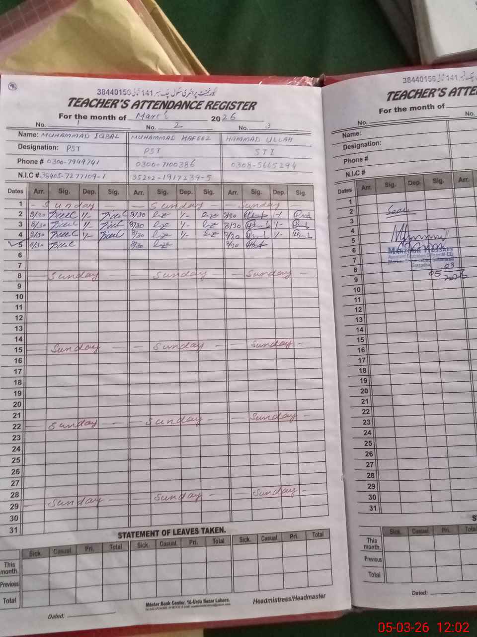| Name: MU**** IQ**** Designation: (School Headmaster's/Headmistress's) PTC/JV Phone/Cell Number: 03**** |
