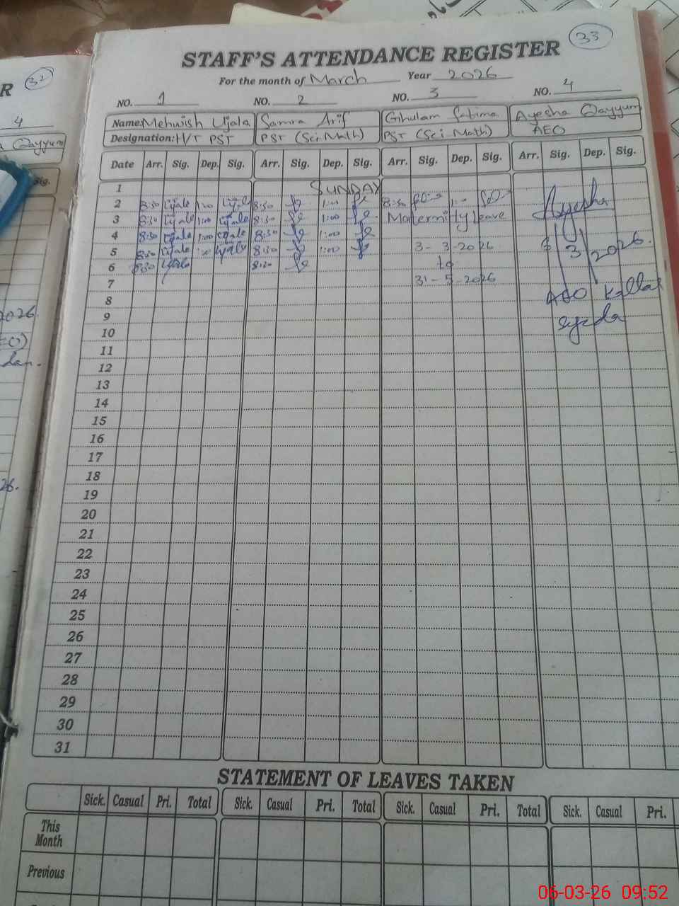 | 37**** | Gh**** Fa**** | PST Science/Maths | Regular | 0 | 0 | 0 | 0 | 0 | 0 | 0 | 0 | 0 | Maternity |