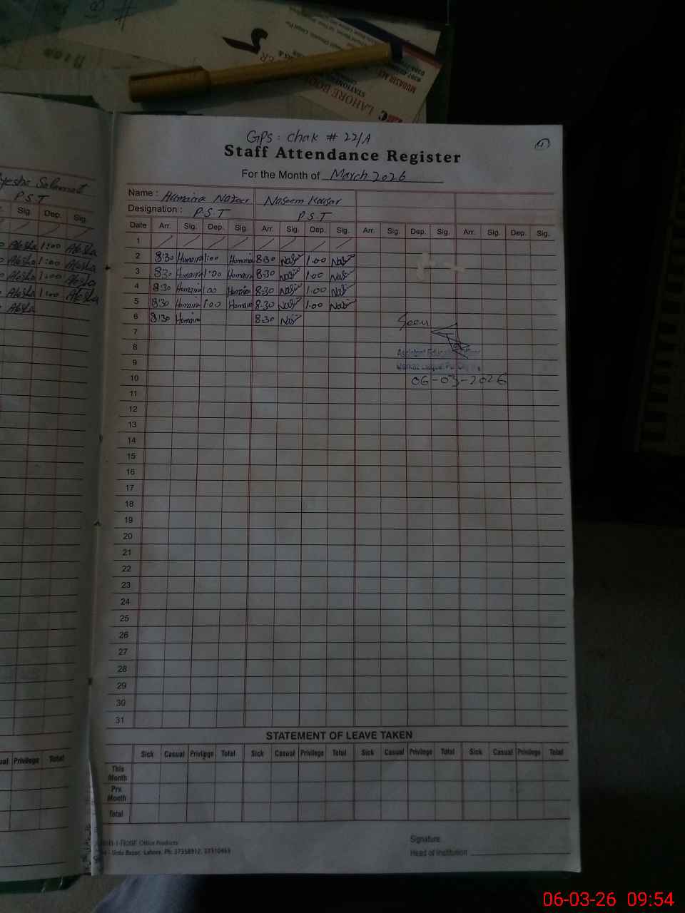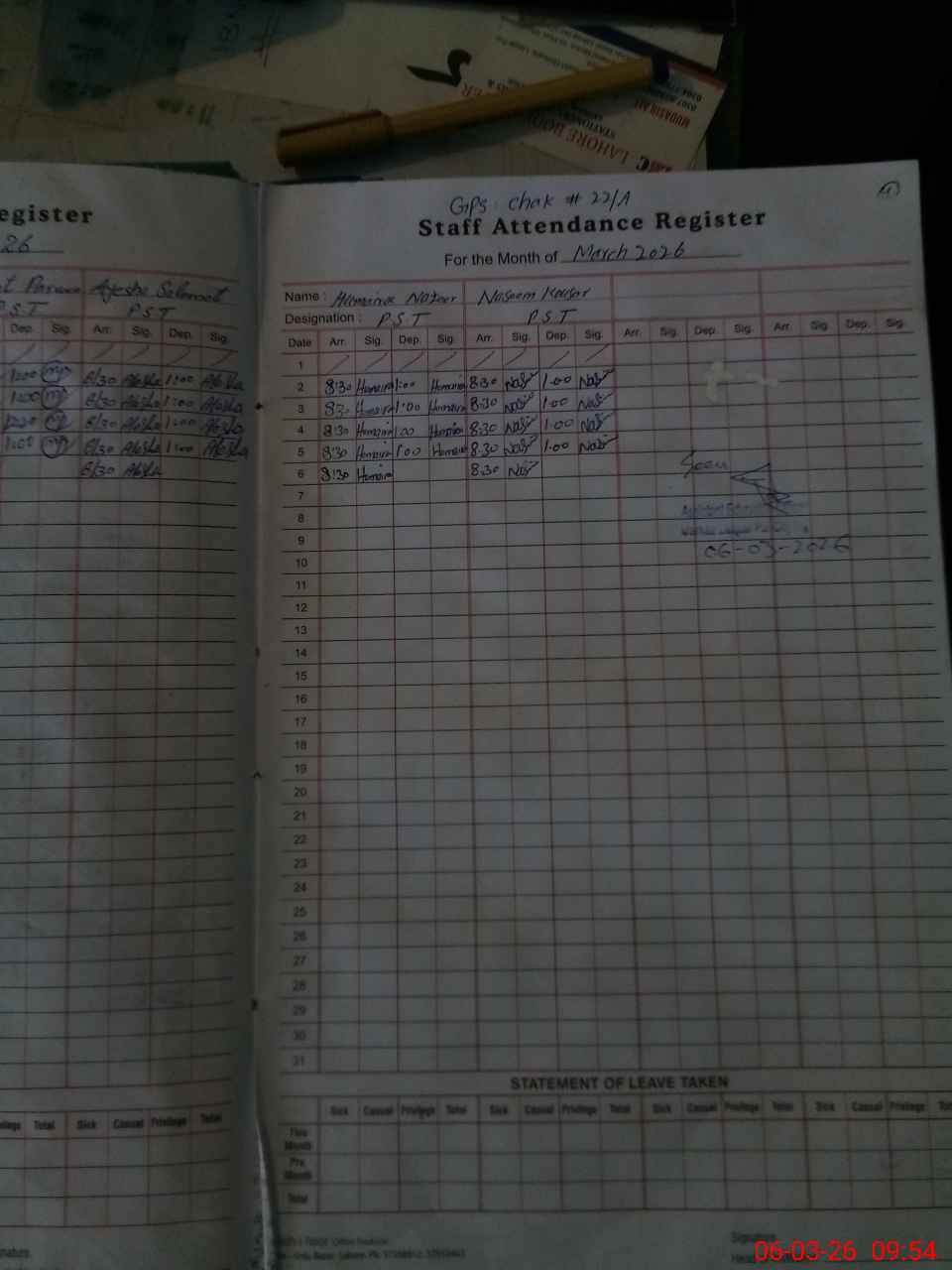 | Name: AS**** RA**** Designation: (School Headmaster's/Headmistress's) PST Phone/Cell Number: 03**** |