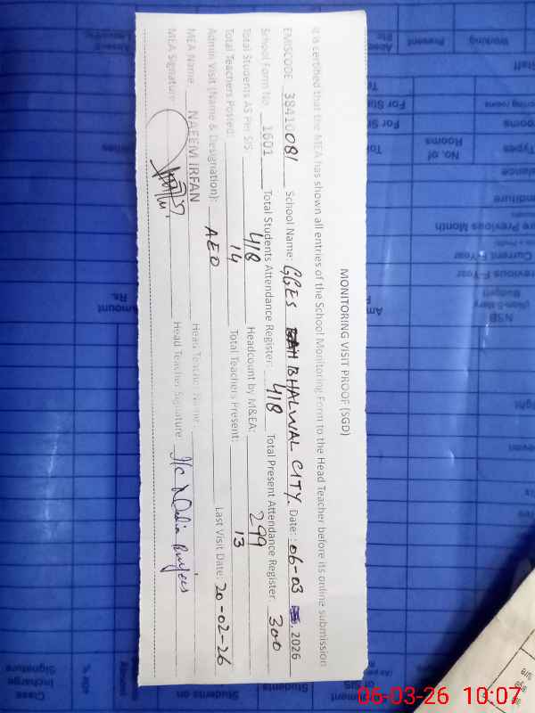 | EMIS Code: 38410081 | Name of School: GGES BHALWAL CITY | |||
