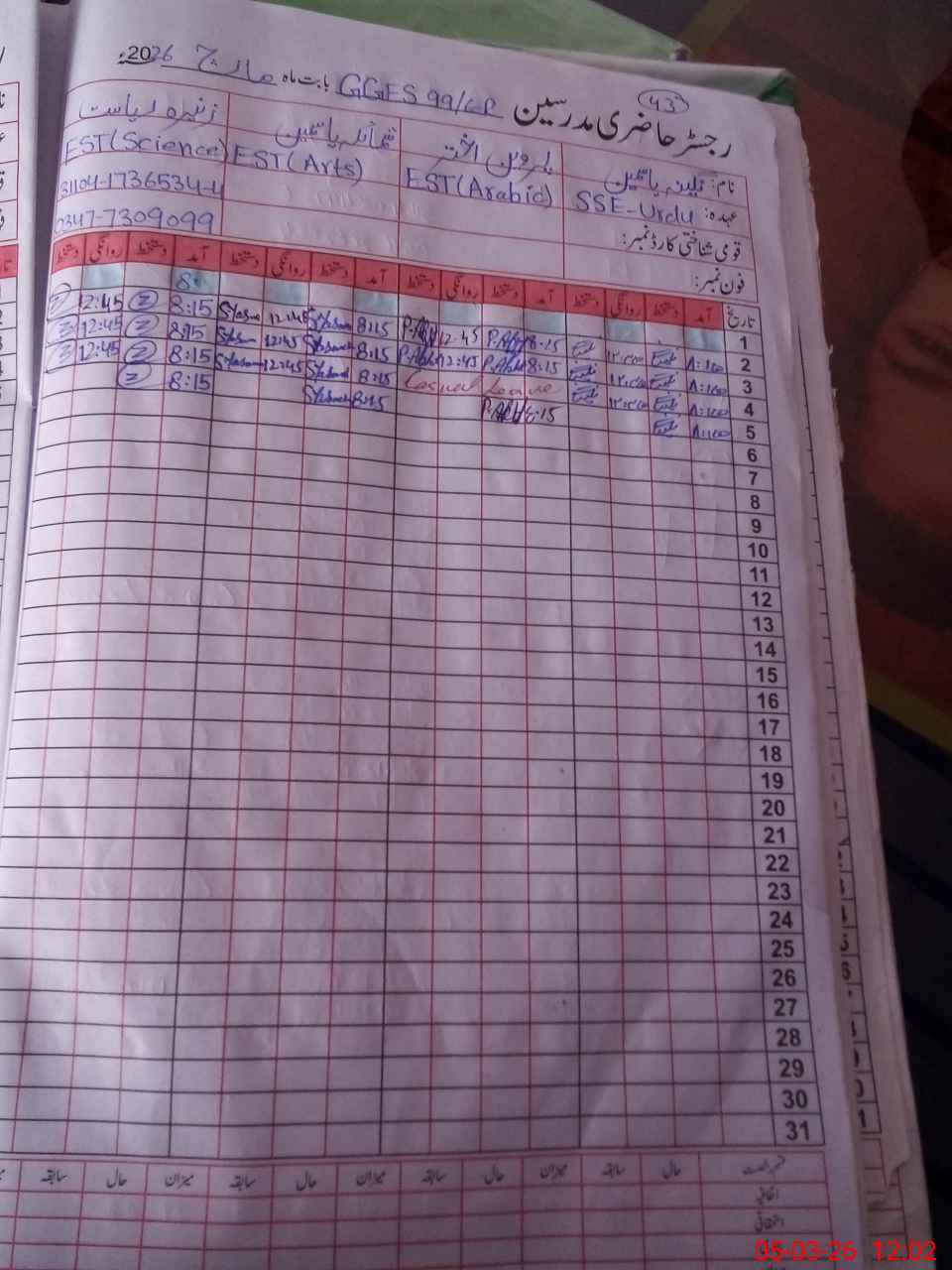 | Name: Na**** Ya**** Designation: (School Headmaster's/Headmistress's) Sst Phone/Cell Number: 03**** |