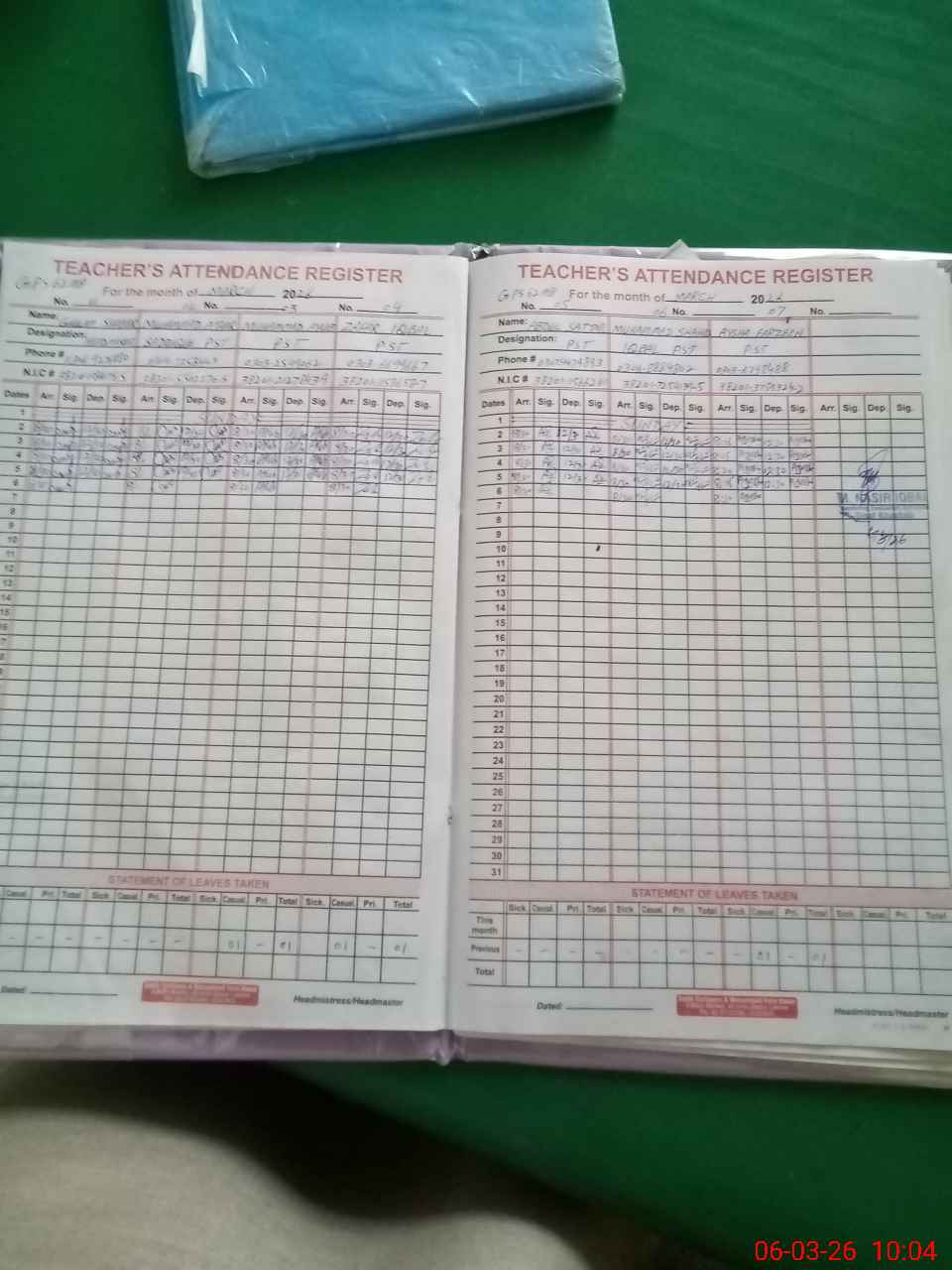 | Name: GH**** SH**** Designation: (School Headmaster's/Headmistress's) PST Phone/Cell Number: 03**** |