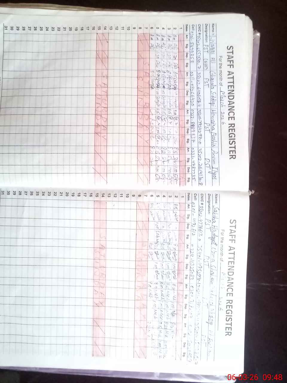 | CNIC | Full Name | Designation | R/C | Absence During Last Calender Month |
