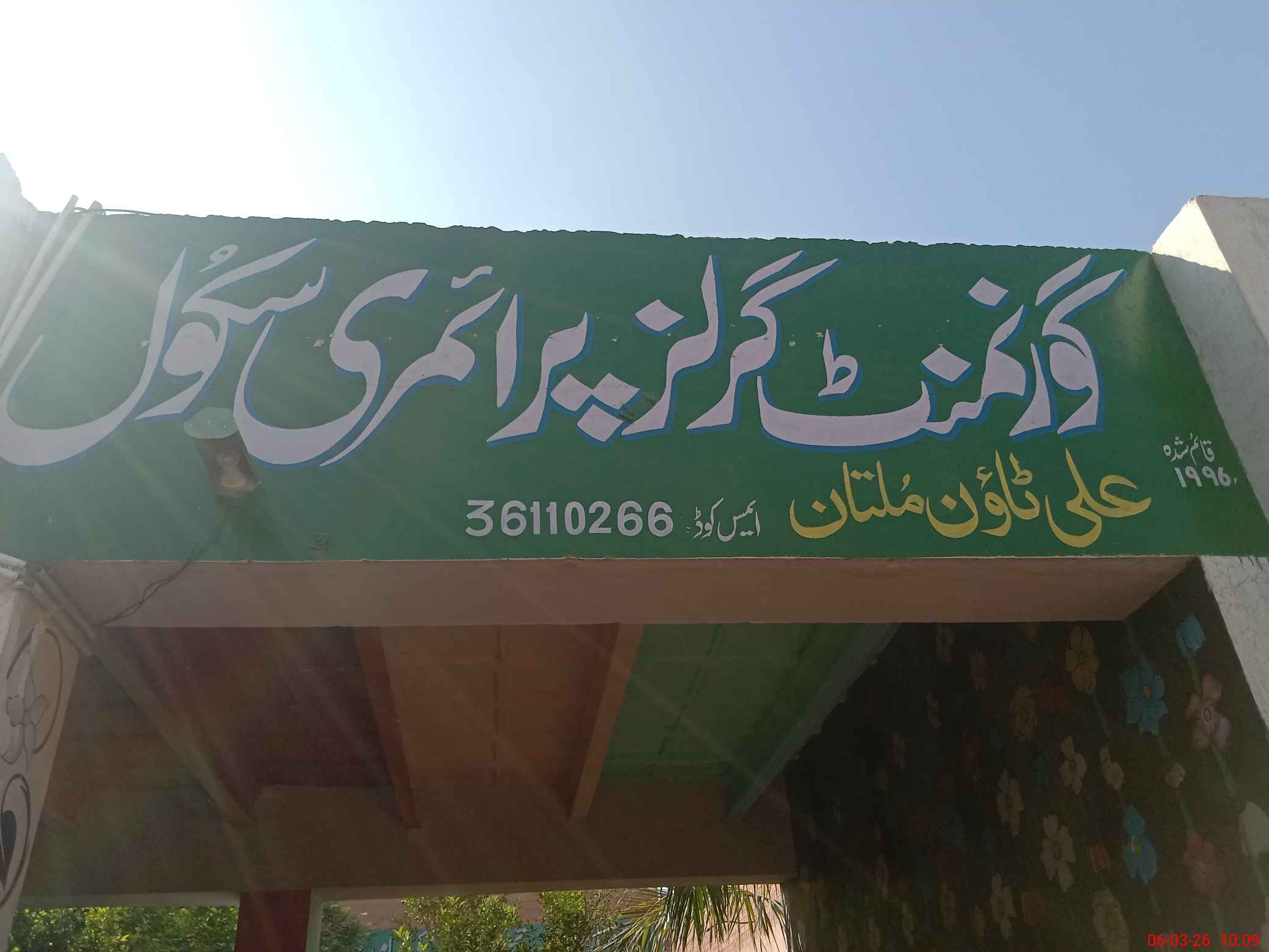 | EMIS Code: 36110266 | Name of School: GGPS ALI TOWN BUDHLA ROAD MULTAN | |||
