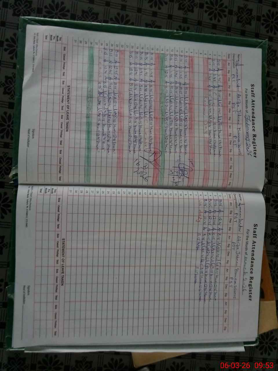 | 37**** | Am**** Ak**** | PST Arts | Regular | 1 | 0 | 0 | 0 | 0 | 0 | 0 | 0 | 1 | Absent (Un-Authorized) |