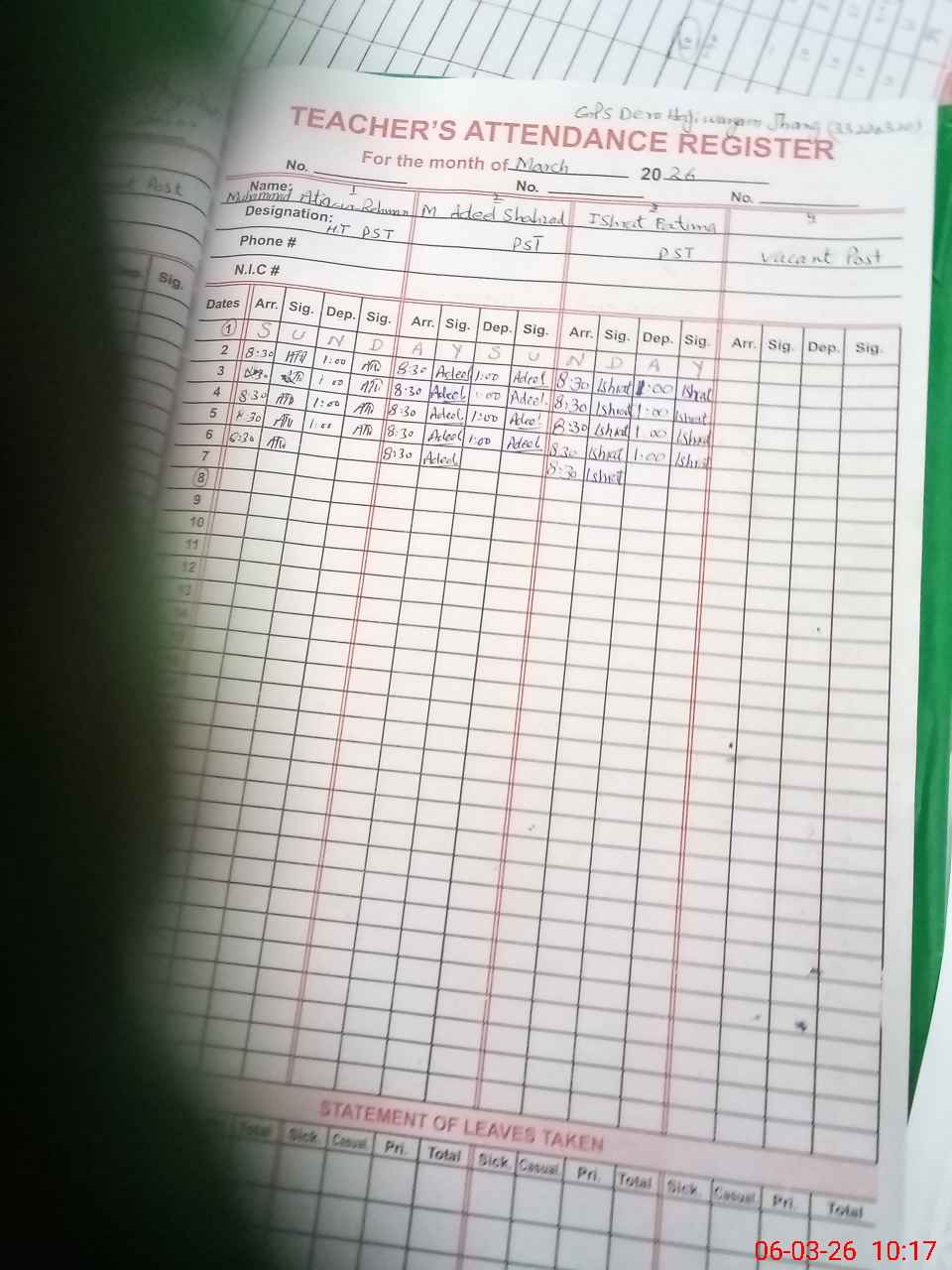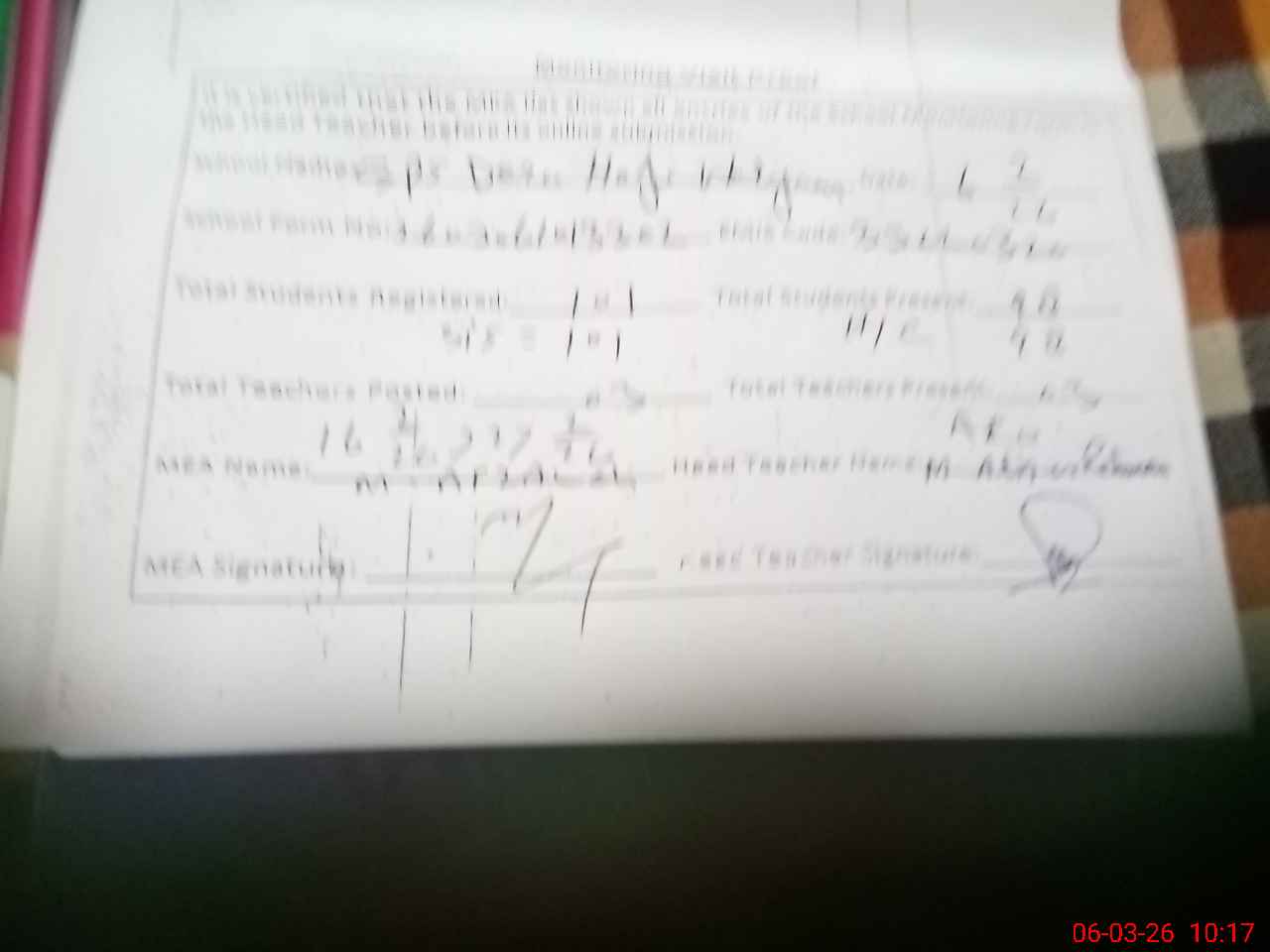 | Name: MU**** AT**** URRE**** Designation: (School Headmaster's/Headmistress's) PST Phone/Cell Number: 03**** |