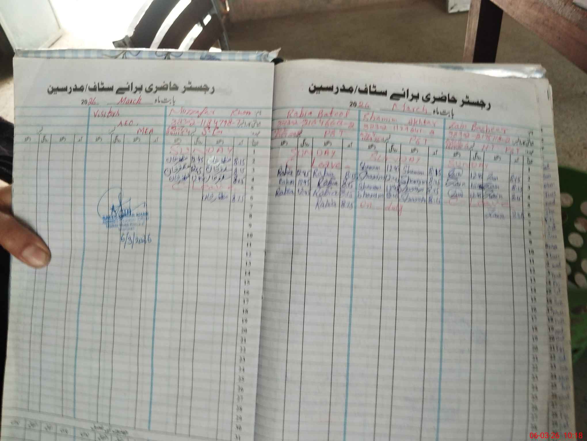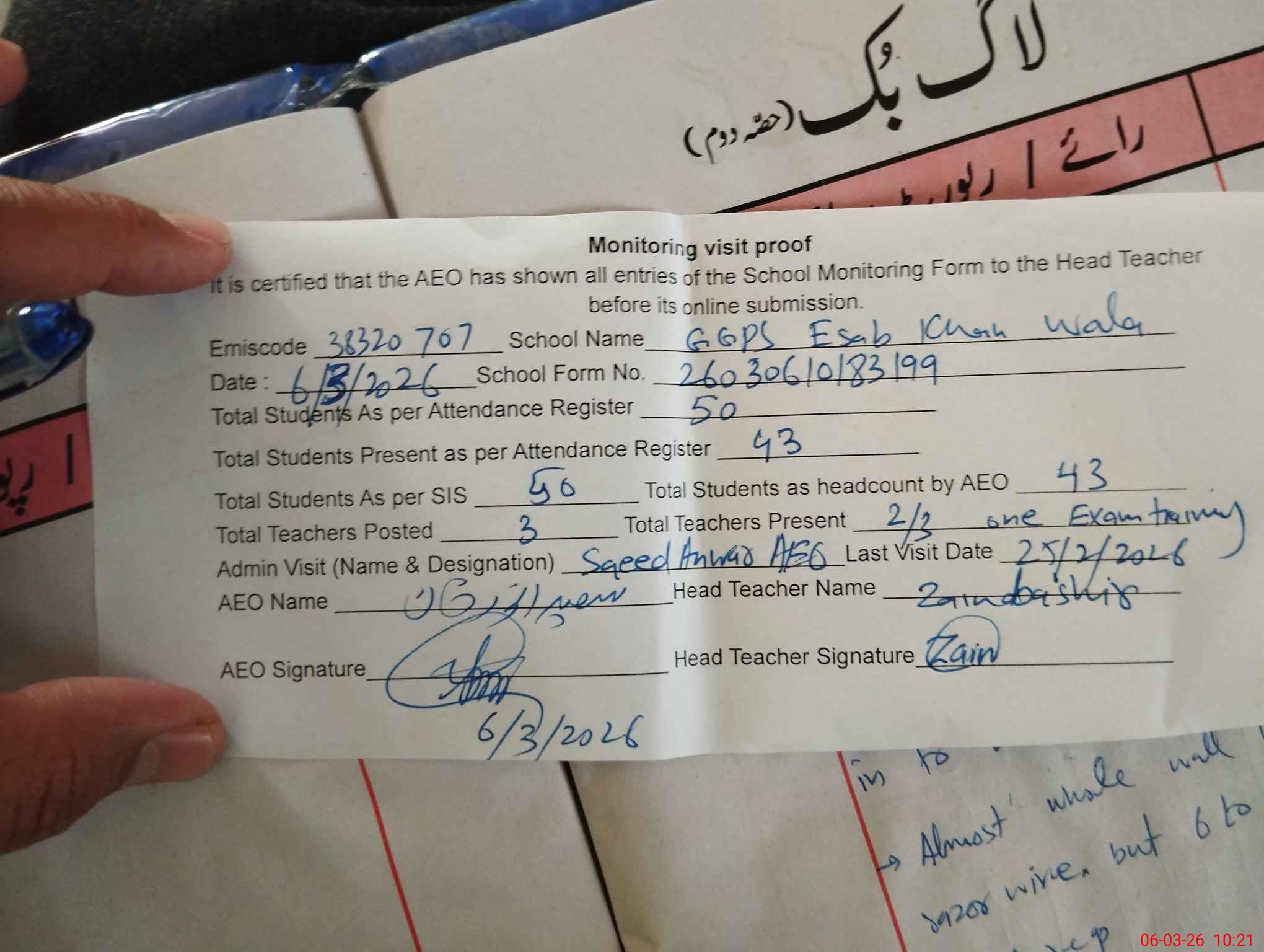 | Name: Za**** Ba**** Designation: (School Headmaster's/Headmistress's) PST Phone/Cell Number: 03**** |