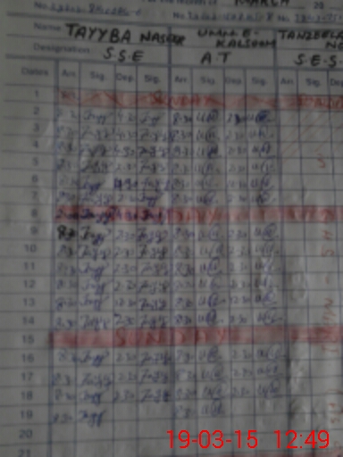 | CNIC | Full Name | Designation | R/C | Absence During Last Calender Month |