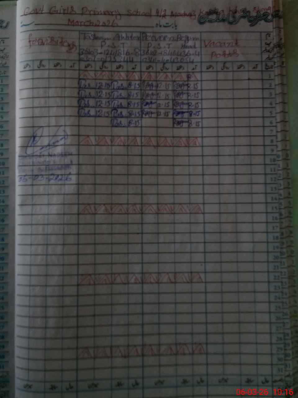 | Name: Pe**** Be**** Designation: (School Headmaster's/Headmistress's) PST Phone/Cell Number: 03**** |