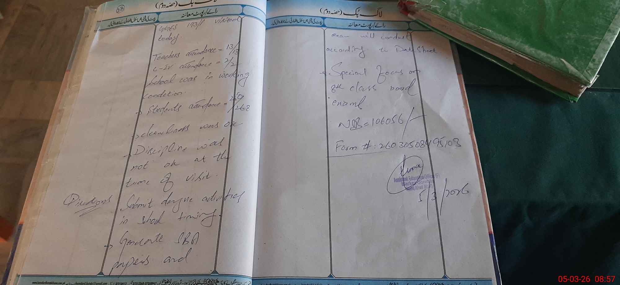 | Certified that this School was Inspected by the Undersigned MEA/DMO Today and the Information Stated Above is as Per Record. | |||||